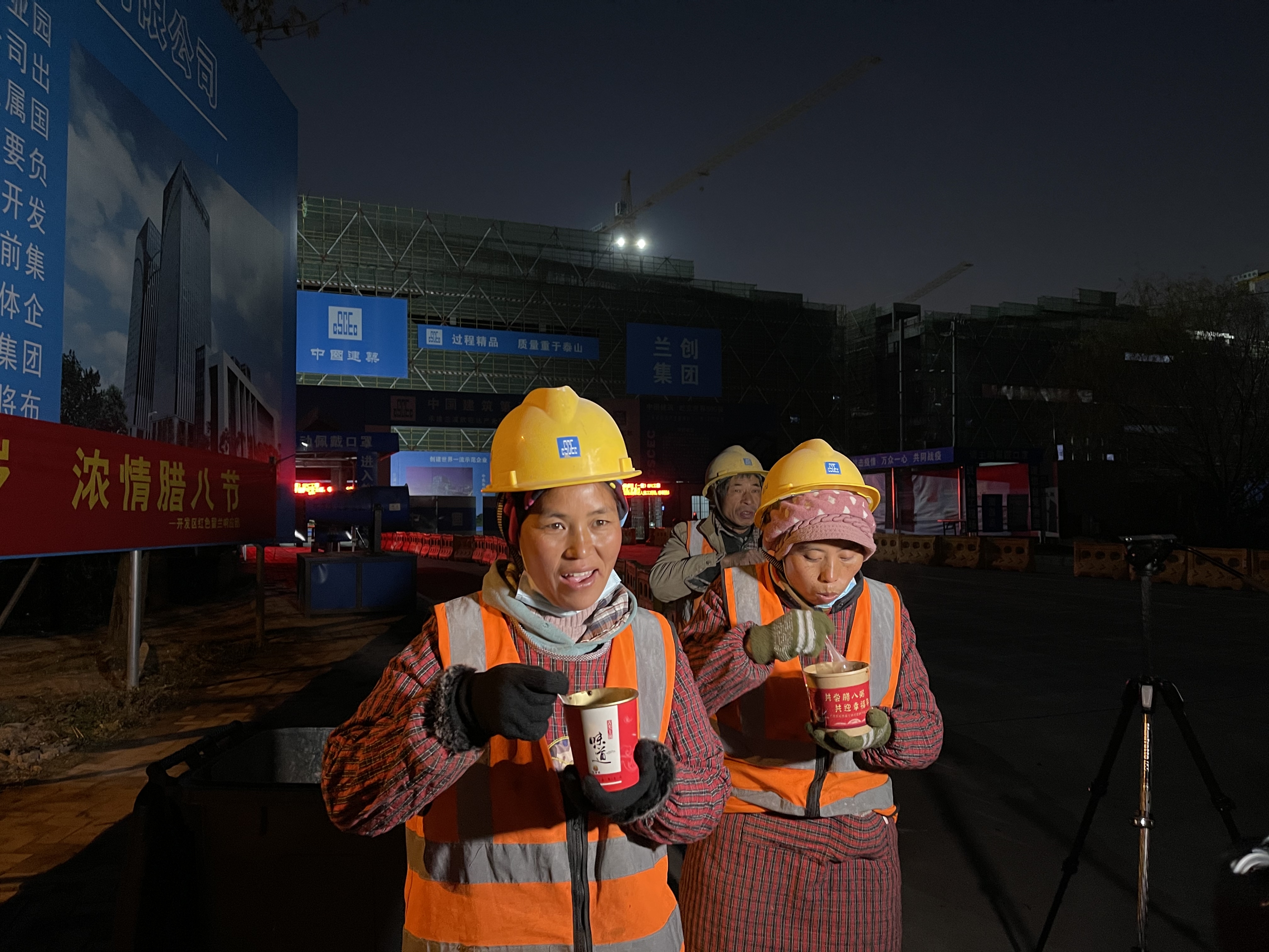 “辛苦了,尝尝腊八粥,休息一会吧!” “红马甲”们还将腊八粥打包送到因太早上班而错过领粥的建筑工人手里,一碗碗热腾腾的粥不仅焐热了他们的手,更暖化了他们的心。