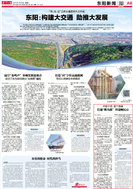“351国道兴平路平改立工程建成通车”“39省道东阳十里头至官清段改建工程建成通车”“南午岭互通工程一期建成通车”……去年4月,东阳吹响“五大会战”号角,沙场点兵、誓师出征,当时光的指针指向2021年,东阳综合交通大会战捷报频传、凯歌高奏。