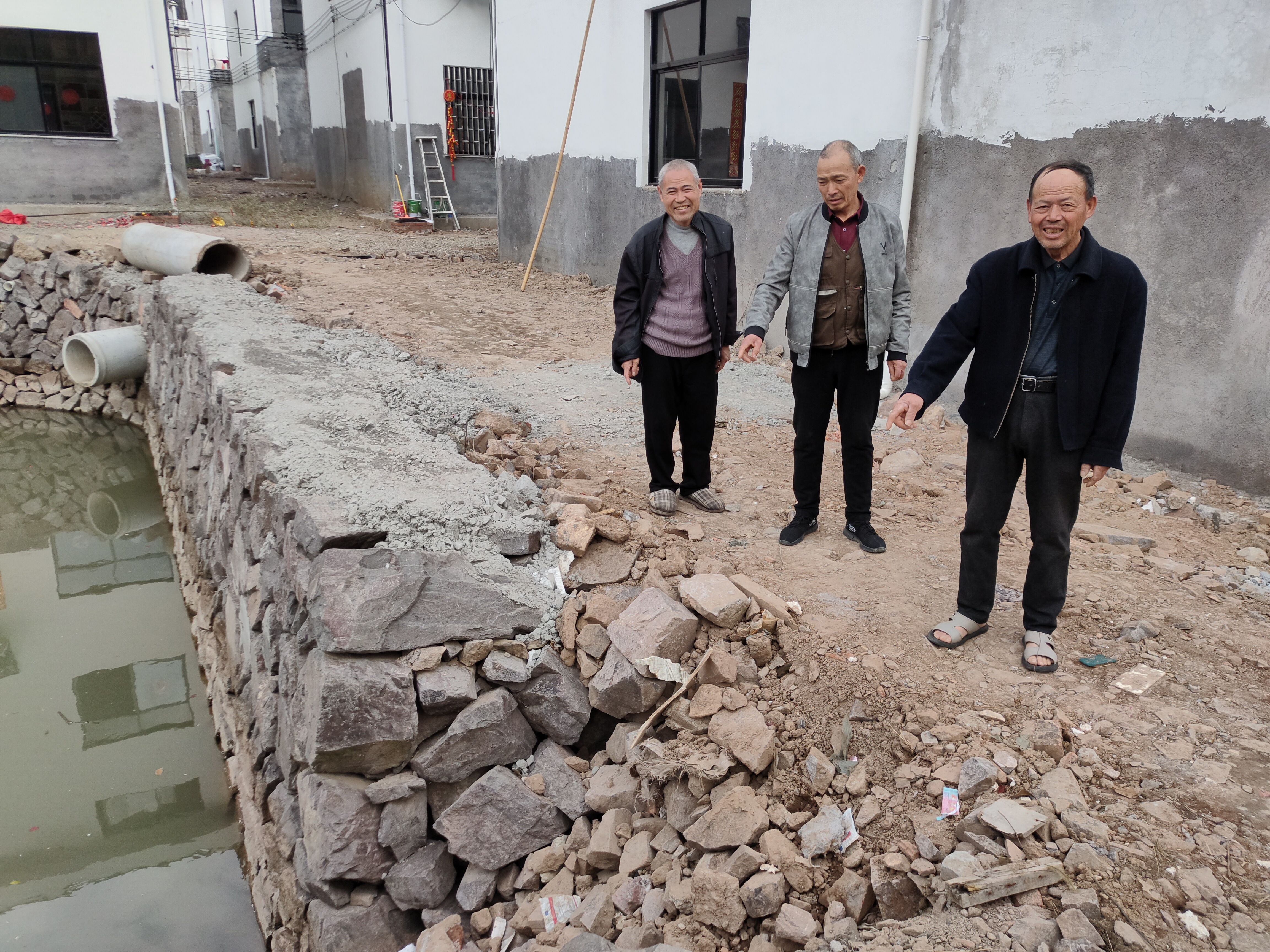 “池塘水深,加上四周没有埠头,这名陌生人只能在水中一边把人托举着,一边拼命向岸边浮游。”据当时参与救援的村民回忆,这一幕正好被附近的村民陈新虎看见了,他立即丢下手中的事情跑过去,一边大声呼救,一边脱掉外衣跳到水里游到他们身边帮忙。附近的村民陈大福、施苏卿等人也闻声赶来。由于新塘还未完工,岸边都是石头很滑,在众多村民的帮助下,他们终于脱险。