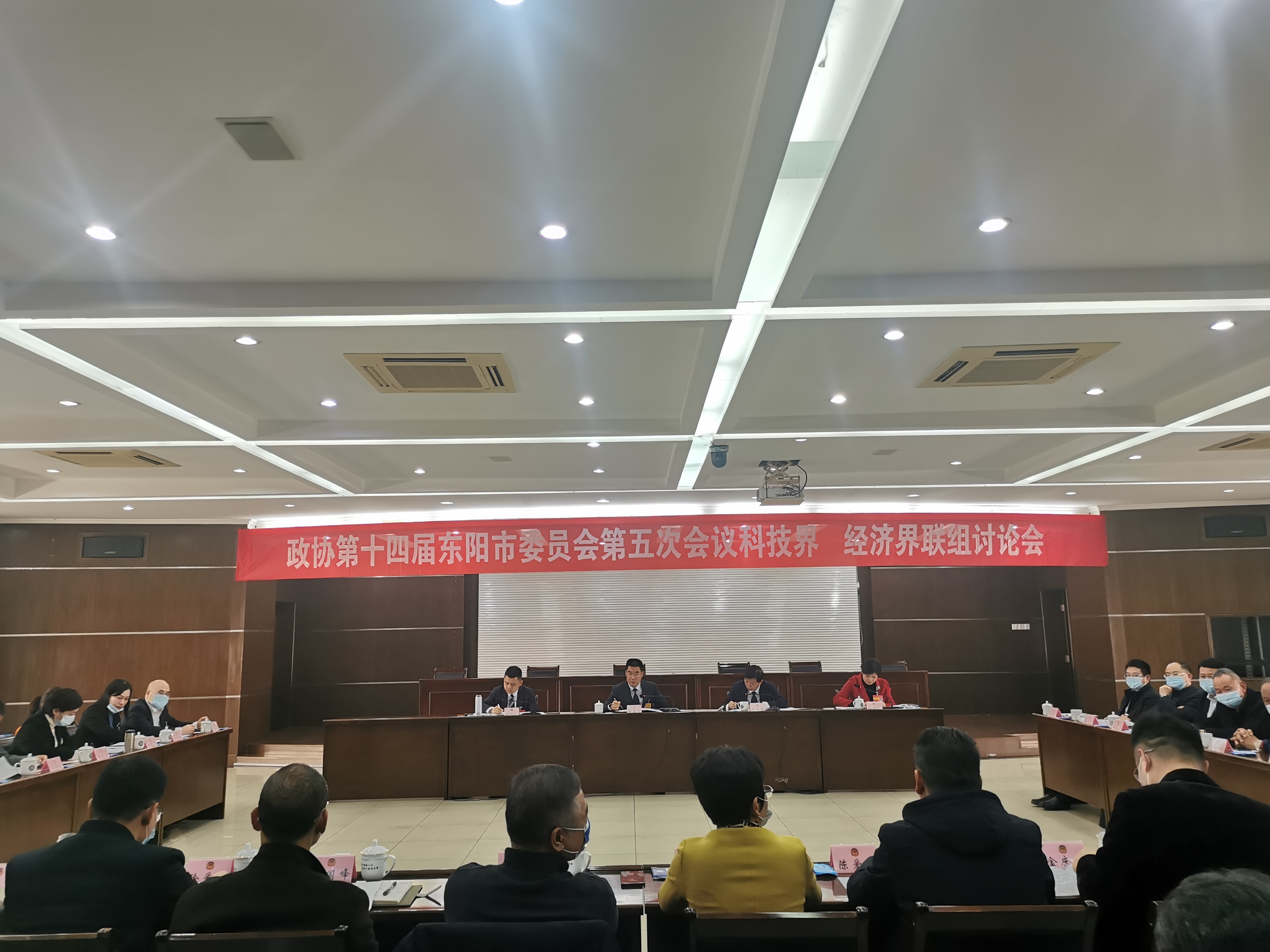 在东阳市政协科技界、经济界联组讨论会上,委员们围绕《政府工作报告》、立足界别特点,从木雕红木、平台建设、工业企业能源消耗等方面建言献策。