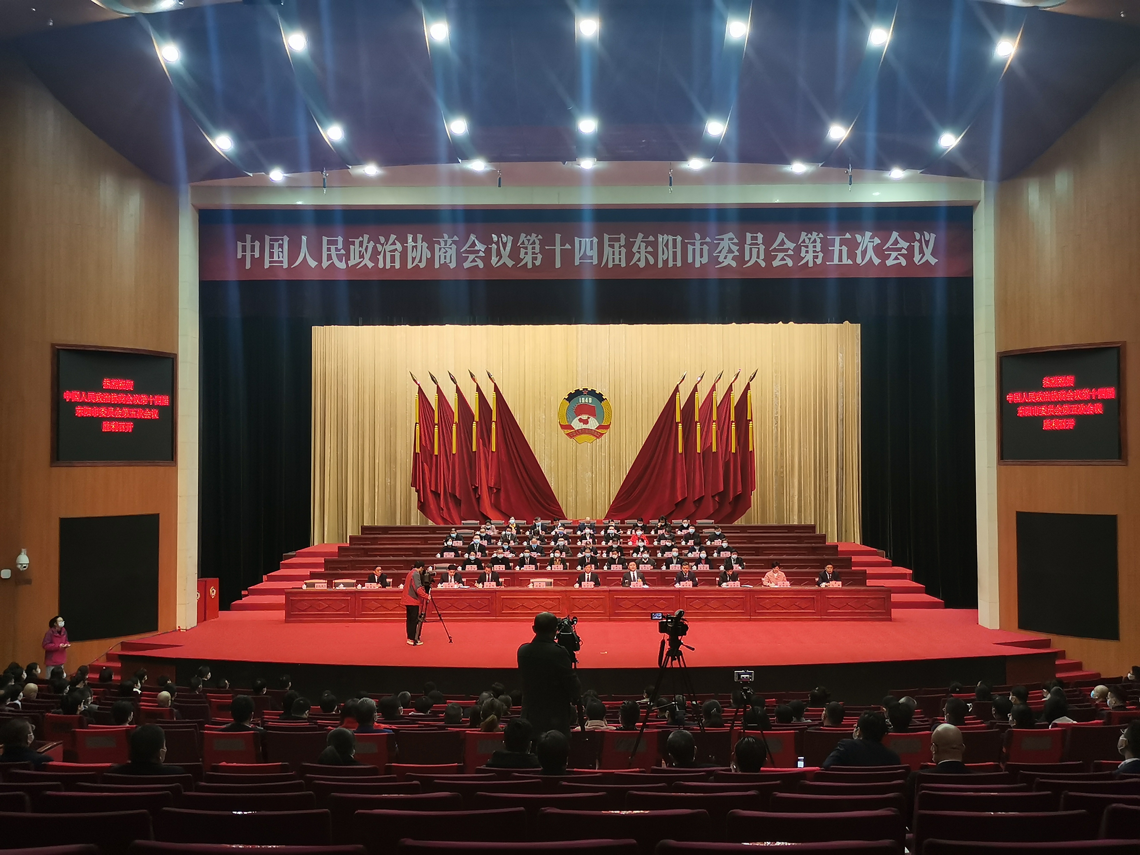 东阳市政协主席斯建民,副主席华伟跃、金德良、张望峰、赵晓珍、楼红霞、冯涧,秘书长沈银福在主席台前排就座。