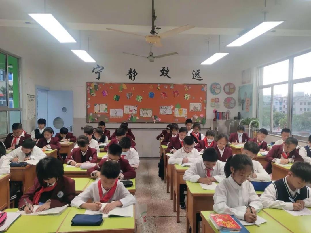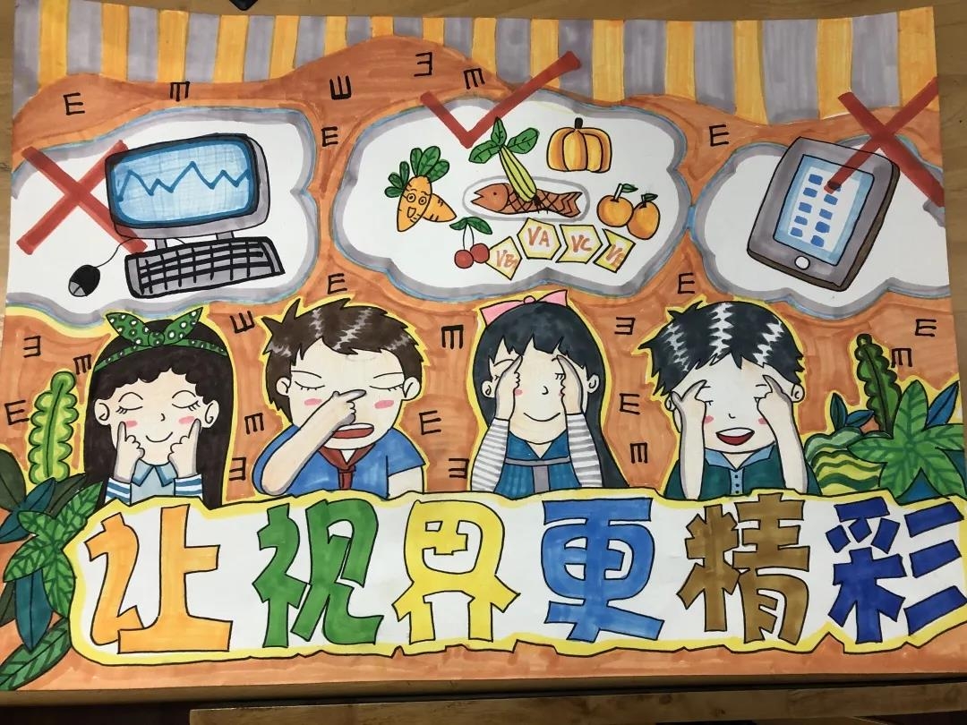 每次下课铃响后,学校增加温馨提醒:“下课了,请大家走出教室眺望远方。”下午第一节课前,设置了“3+5”音乐时间,全校播放歌曲《你笑起来真好看》,让孩子们在3分钟里做准备工作,再是5分钟的“午唱课”,所有人都放下课本和作业,唱唱歌休息一下。学校给每个孩子建视力档案,每学期初、期末检测。