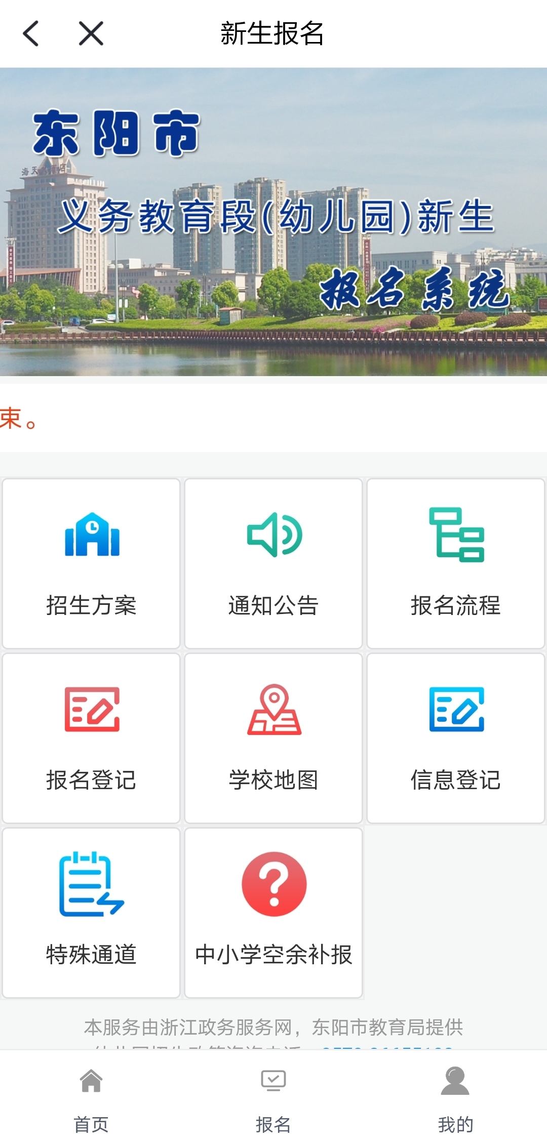 2020年义务教育段招生工作平稳,全面实施无纸化入学报名,家长、学校通过浙里办(浙江政务网)“东阳新生报名”平台即可报名与审核录取。