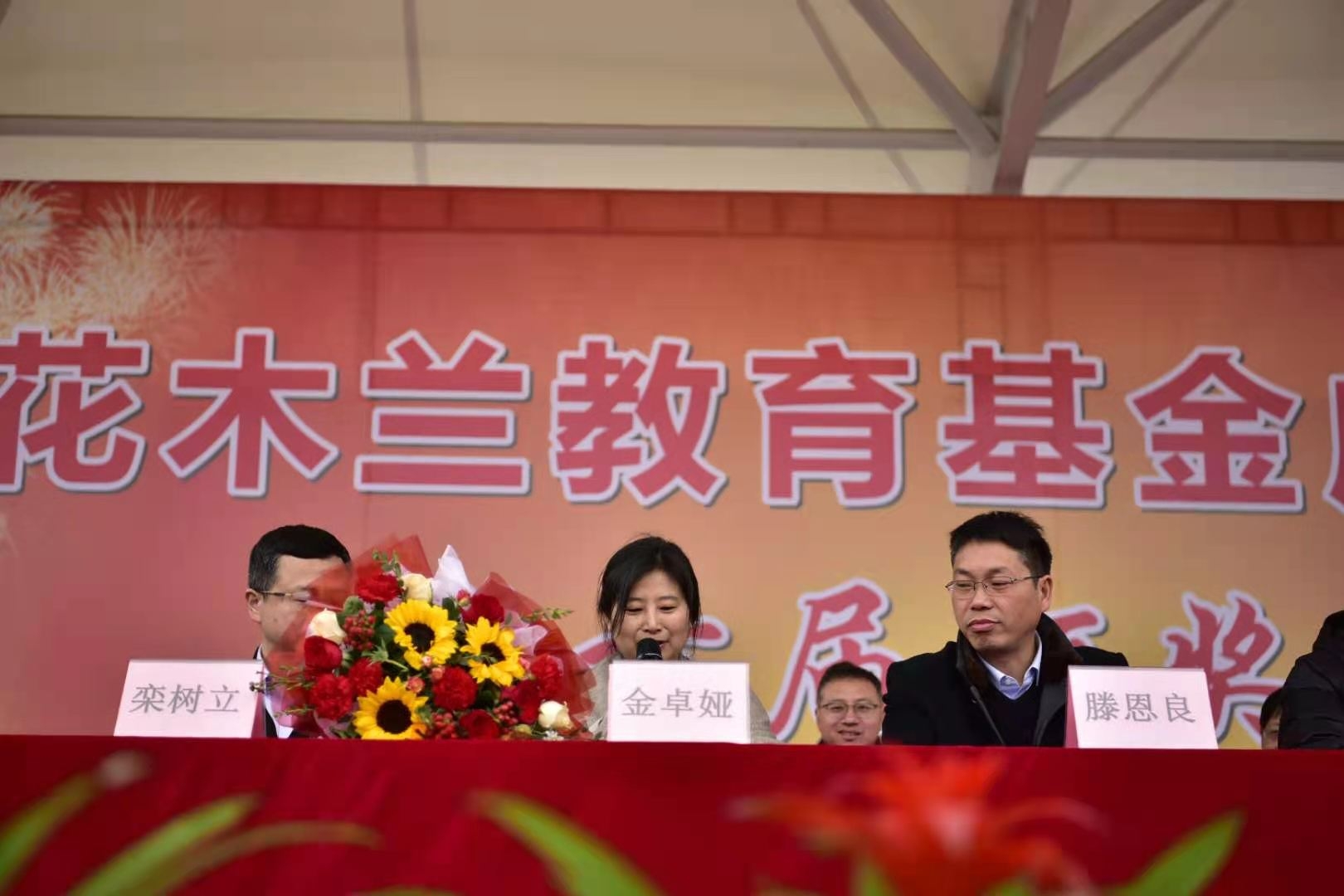 今天是“三八”妇女节,在这个特别的日子里,金卓娅再次献上对家乡教育的爱意,共出资500万元,设立“花木兰奖教奖学基金”,每年用基金收益的40余万元奖教奖学,设立优秀学生奖、优秀教职工奖、学生成长资助奖,各奖项中女性获奖人数均不低于70%,奖励怀鲁小学、怀鲁初中品学兼优的学生和师德高尚、业绩显著的教师,以及用于对师生的艺术培训等。