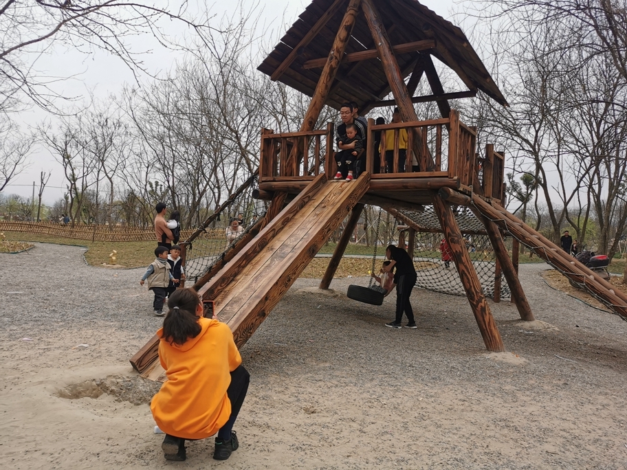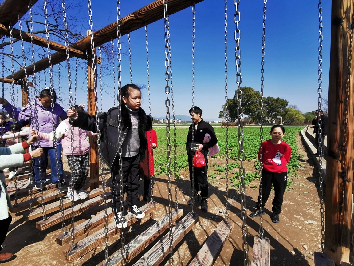滑滑梯、过荡桥、放风筝……这边,孩子的嬉闹声此起彼伏;拍照片、录视频、唱婺剧……那边,大人的欢笑声传得很远。一个阳光午后,记者一走进白溪江共享田园,便被这份热闹吸引了。