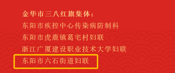 日前,东阳市六石街道妇联被授予“金华市三八红旗集体”称号,是2020年度获此荣誉的东阳唯一一个乡镇(街道)级妇联。