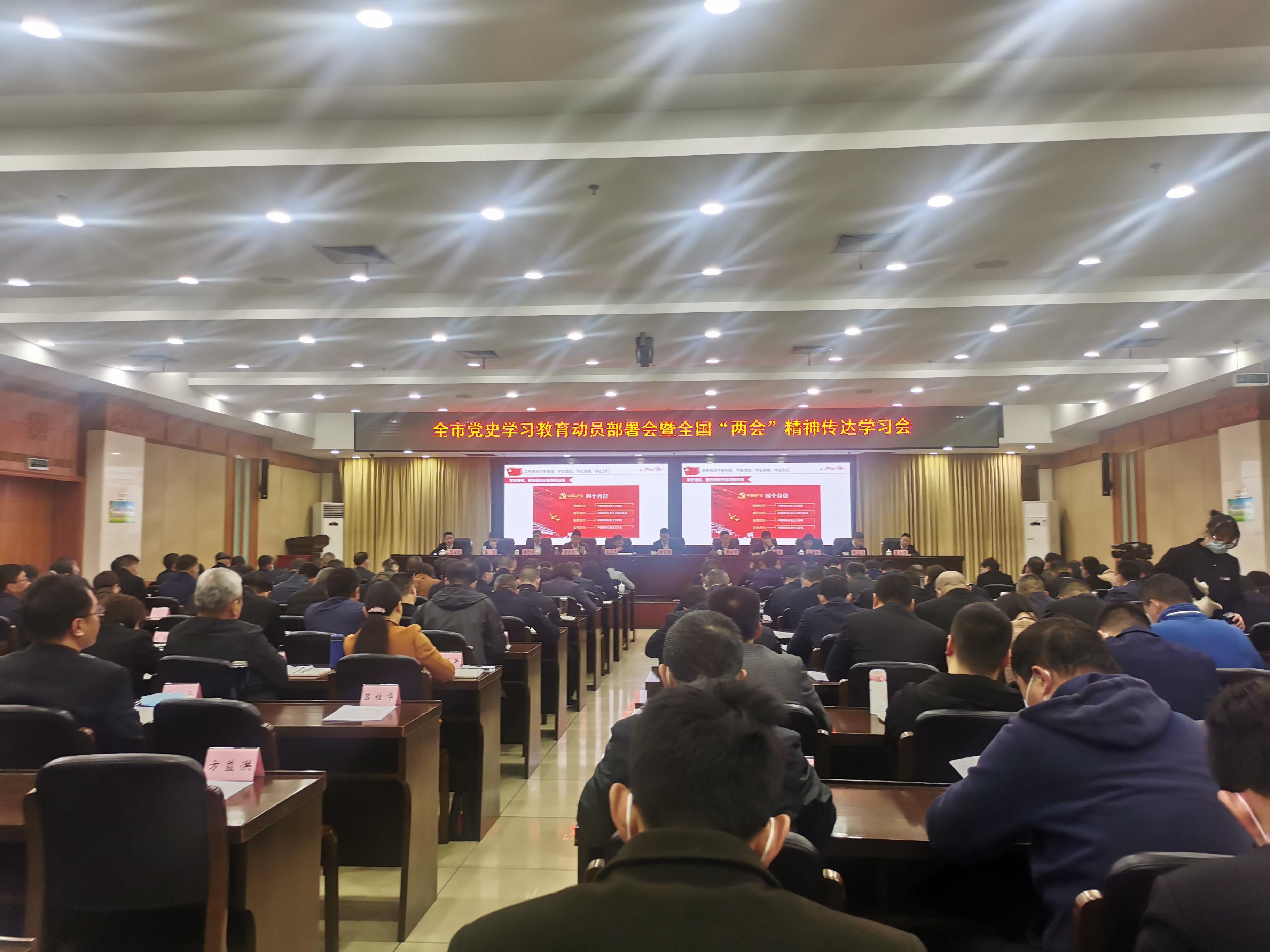 “学史者不愚,知史者不慌,用史者不乱。百年党史既是固根涵源的营养液、揽镜自照的清醒剂,更是鉴往知来的航标灯。”今天上午,东阳召开全市党史学习教育动员部署会暨全国两会精神传达学习会,金华市副市长、东阳市委书记傅显明带头上党史课,引导广大党员干部学党史、悟思想、办实事、开新局。楼琅坚、朱志杰、斯建民、胡勇春等东阳市四套班子领导参加。
