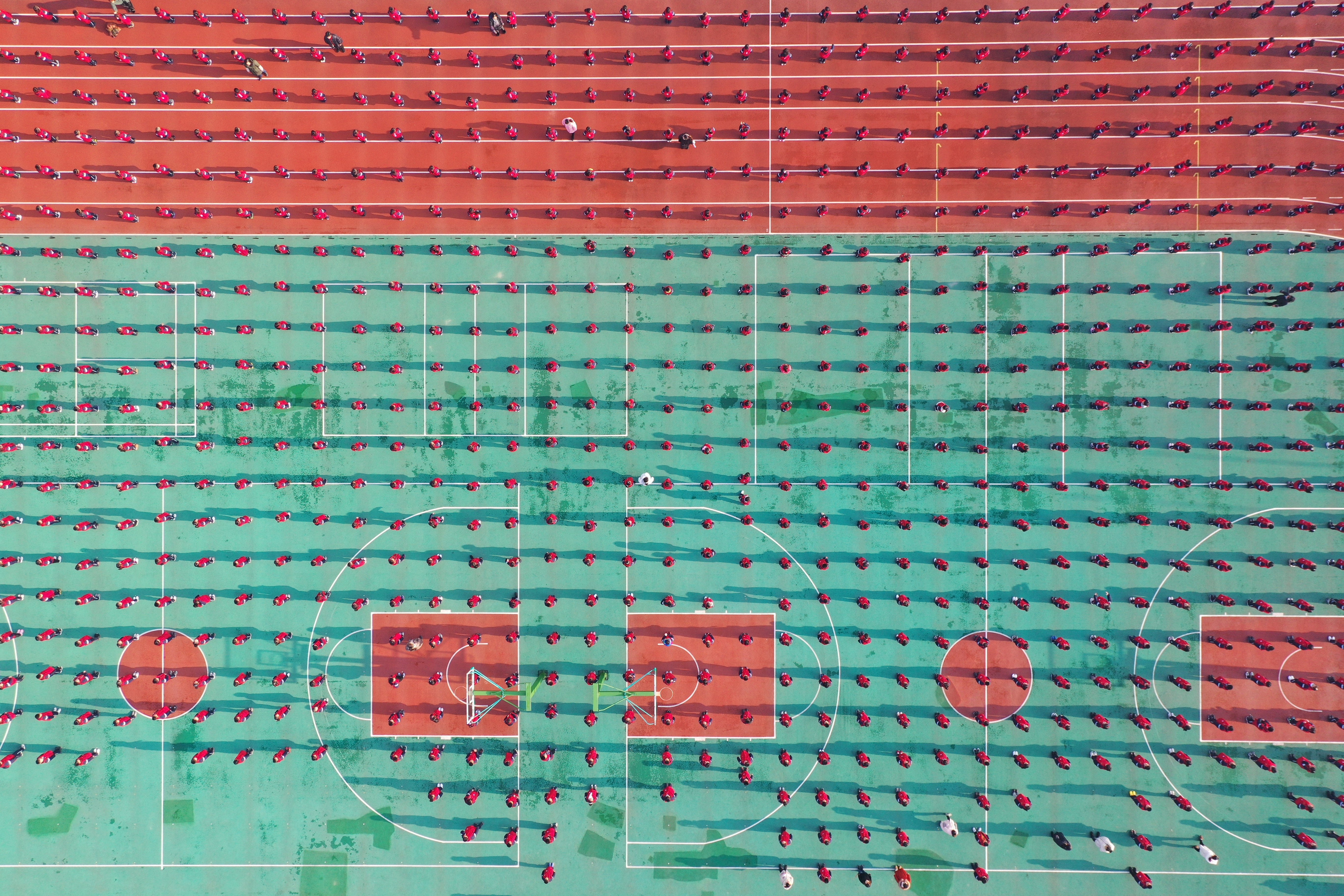 每周二至周五上午,东阳市巍山镇中心小学近2000名师生都会“圈地跑”。如此日常的场面,换个角度从空中俯瞰,就变得有趣了,像是真人版“贪吃蛇”。