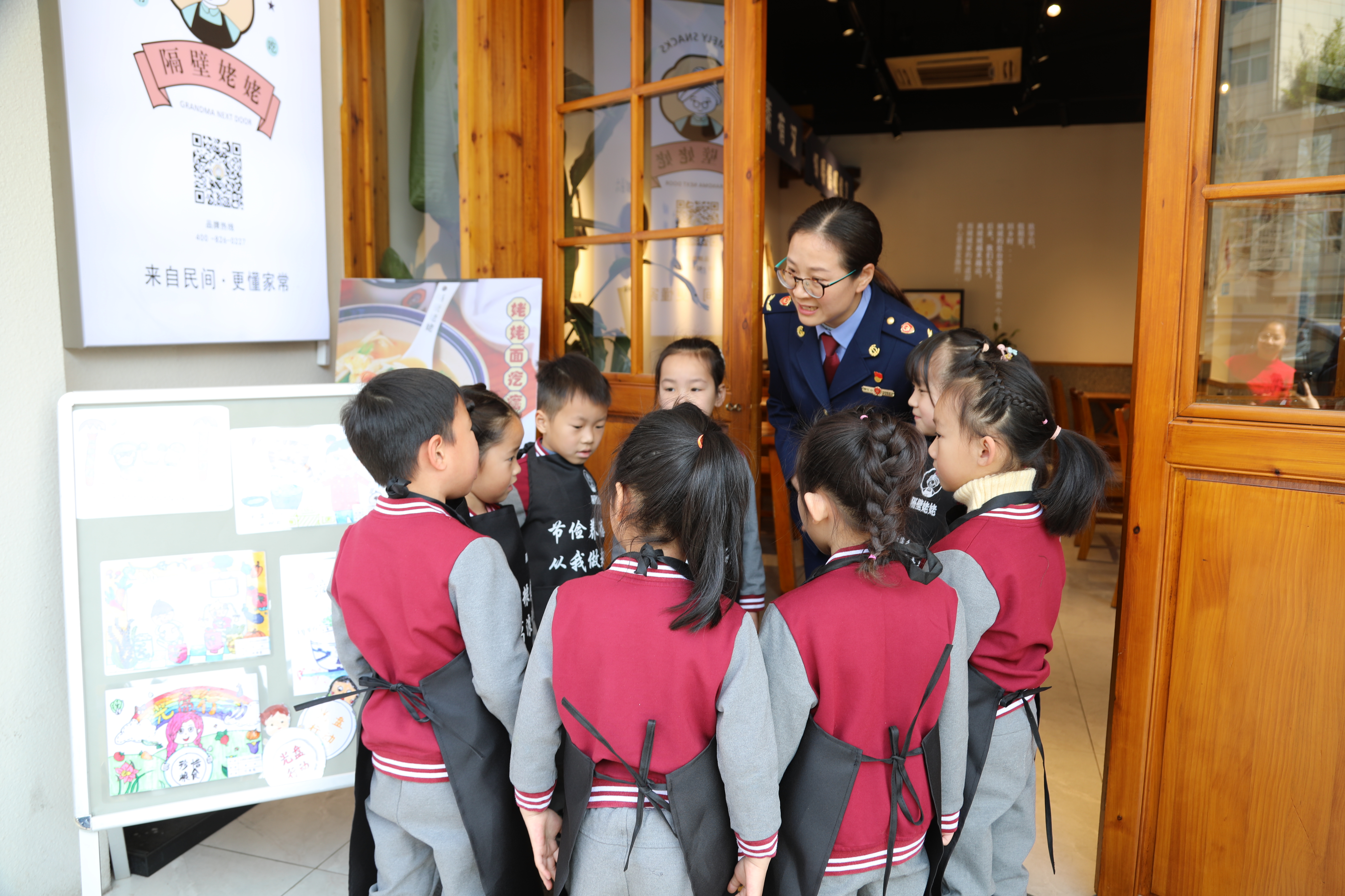 活动中,市场监管局的工作人员和幼儿园的小朋友一起对附近餐饮店、就餐的顾客及路人劝导远离浪费,践行“光盘行动”。同时,还发放了印有“诗《锄禾》;节约粮食,远离浪费;手中有粮,心里不慌;节俭养德,从我做起”等宣传标语的围裙。