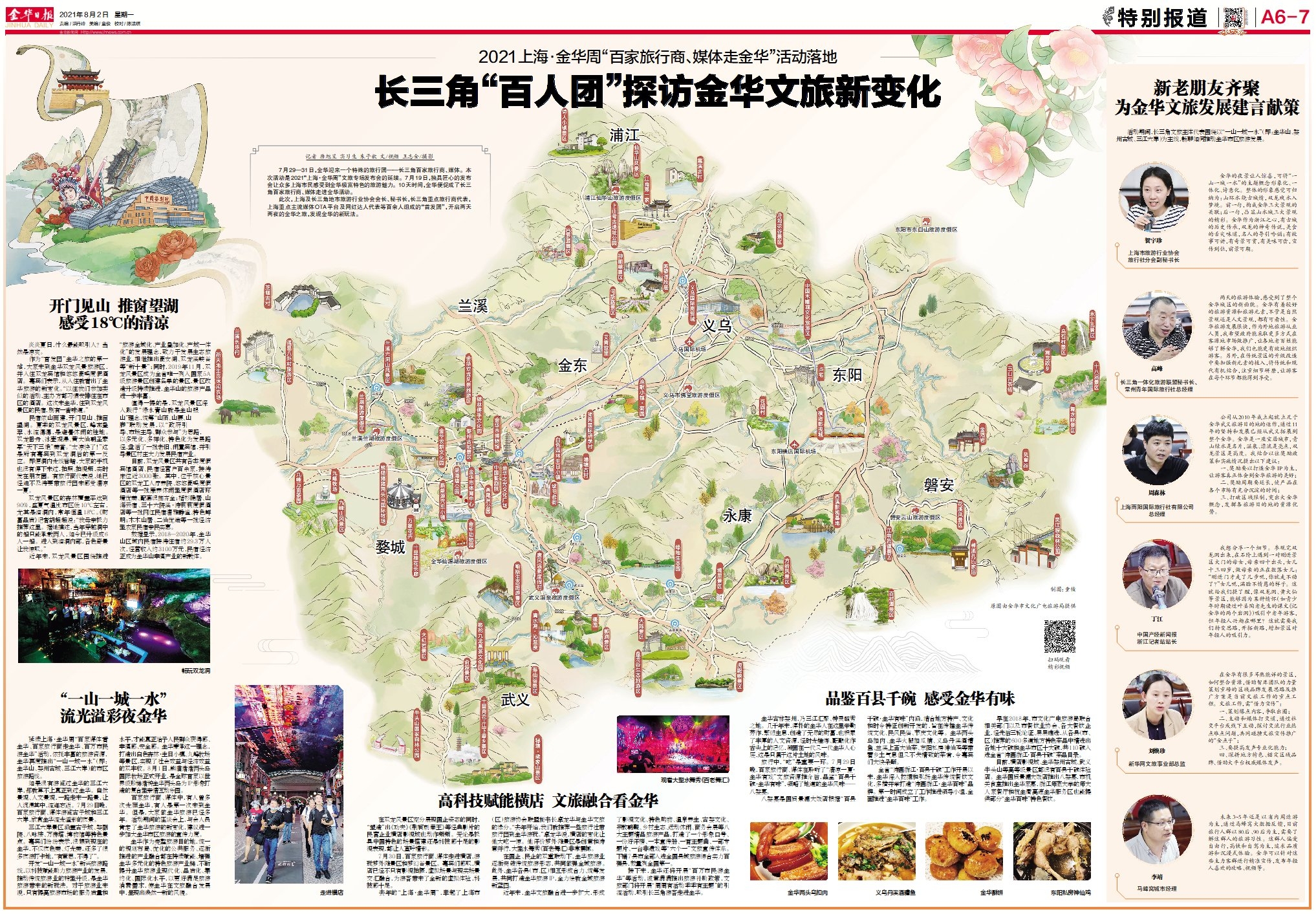 延续上海·金华周“百家媒体看金华、百家旅行商走金华、百万市民游金华”活动,依托丰富的旅游资源,金华再度推出“一山一城一水”(即:金华山、婺州古城、三江六岸)的市区旅游路线。