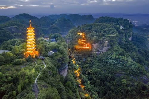 昨天晚上,华灯初上,记者来到方岩风景名胜区,只见灯光下阶梯、圆梦塔等轮廓毕现,形成一幅美丽的夜景图,吸引游客前来观光。有关部门提醒市民,暑期就要结束,就近旅游,文明出行。