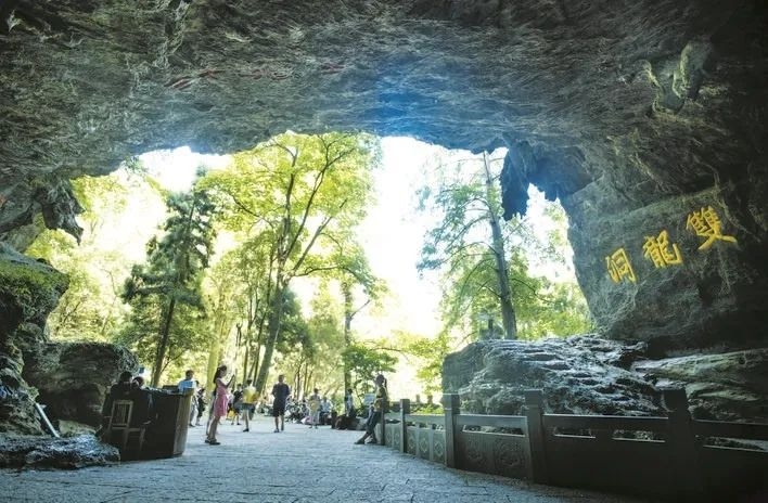 当天,虽然停车场停满车辆,但游客中心内秩序井然,文明之风处处可见。市民于女士趁着假期带着5岁的儿子游游选择本地游, 来到了双龙洞景区游玩。“至少他年纪小,再加上担心疫情影响,所以很少带他出来玩。”于女士说,看到景区门口有许多志愿者提醒戴好口罩,认真仔细验证健康码,安全、健康、有序的环境能让游客玩得放心,舒心。
