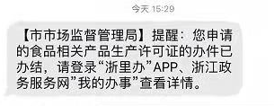 工业产品生产许可受理审批流程保持不变,接受委托下放的市局和县(市、区)局审批通过后,审批系统自动生成工业产品生产许可证电子证书。企业可通过“浙江政务服务网”自行下载电子证书,也可通过推送的短信点击下载获取。