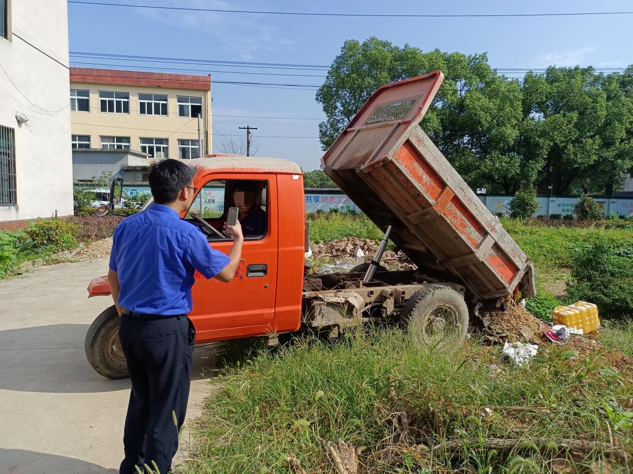当天上午8时许,正在文教路巡逻的执法队员发现一辆满载垃圾的农用柴油车往学校区域驶去。“这车垃圾没有分过类,而且那块区域也没有两定四分点,很可能会偷倒垃圾,赶紧跟上!”凭借以往执法工作经验,执法人员盯上了这辆农用柴油车。果不其然,当其驾驶到游埠初中附近的一处空地时,驾驶员便开始倾倒垃圾,执法队员立即上前制止。