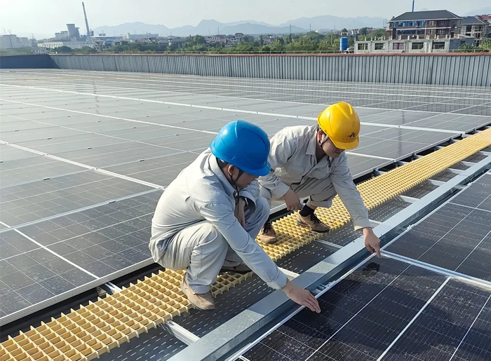 “作为金华首家接入智慧光伏运营管理平台的企业,我们将充分利用好企业屋顶空间资源,大力建设光伏发电项目,依托平台优势,打造屋顶上的绿色能源基地,助力地方节能减排和绿色发展。”浙江捷安工程有限公司负责人鲍翔介绍,捷安分布式光伏项目可利用屋顶面积3300平方米,采用单晶硅组件1200块,100千伏逆变器6台构成发电模块,通过自发自用、余量上网的方式将380伏交流电并网,预计年发电量可达53.3万千瓦时,有效助力地方节能减排和绿色发展。