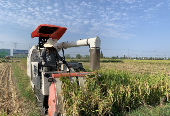 眼下正值晚稻收割季,兰溪市云山街道岩头村的农户抢抓晴好天气,忙着收割稻子。
