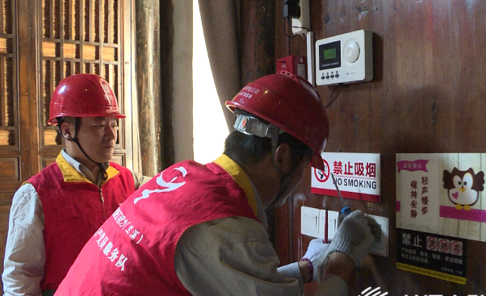 诸葛八卦村内古色古香的明清建筑,以及“华夏一绝·八卦奇村”的奥秘,吸引着国内外游客的纷至沓来。“十一期间景区游客量较大,各类供电设备将达到一个满负荷的状态。我们对景区内的一些民宿进行了用电安全的检查,并义务更换了一些老旧设备,为游客营造一个舒适的用电环境。”在诸葛八卦村,国家电网浙江电力(兰溪)红船共产党员服务队队员郑琳辉说。在村内的“昱栈”民宿,供电公司的工作人员仔细检查了民宿内的低压供电线路、开关插座以及大功率用电设备,确保客栈用电安全。