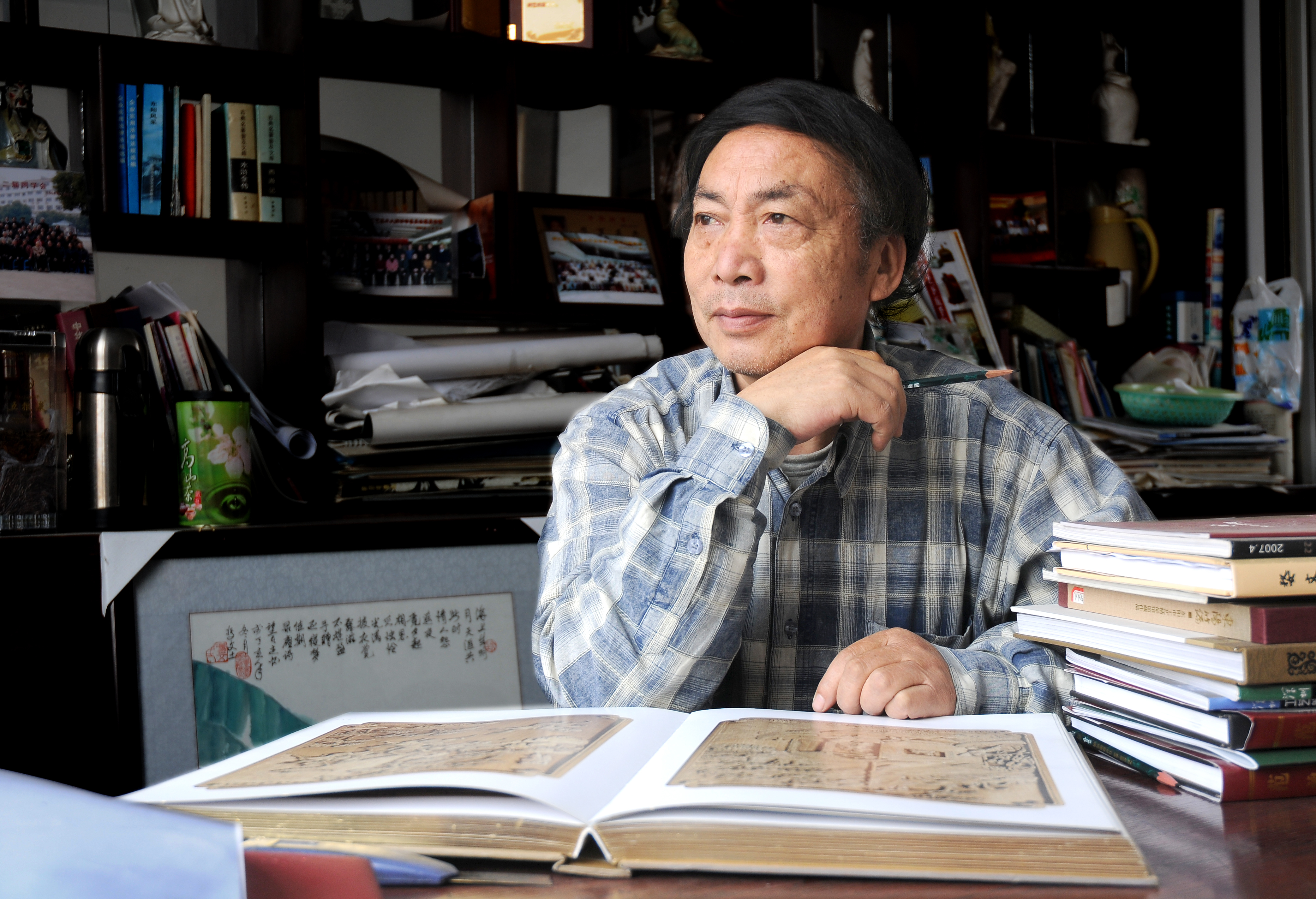 活到老,学到老。虽然年届七旬,冯文土依然每天坚持绘画、书写。“艺深无境,只有勤作深就,才能得到真谛。”在60多年的从艺历程中,冯文土不断从生活中汲取灵感,坚持为东阳木雕的传承与发展贡献力量。