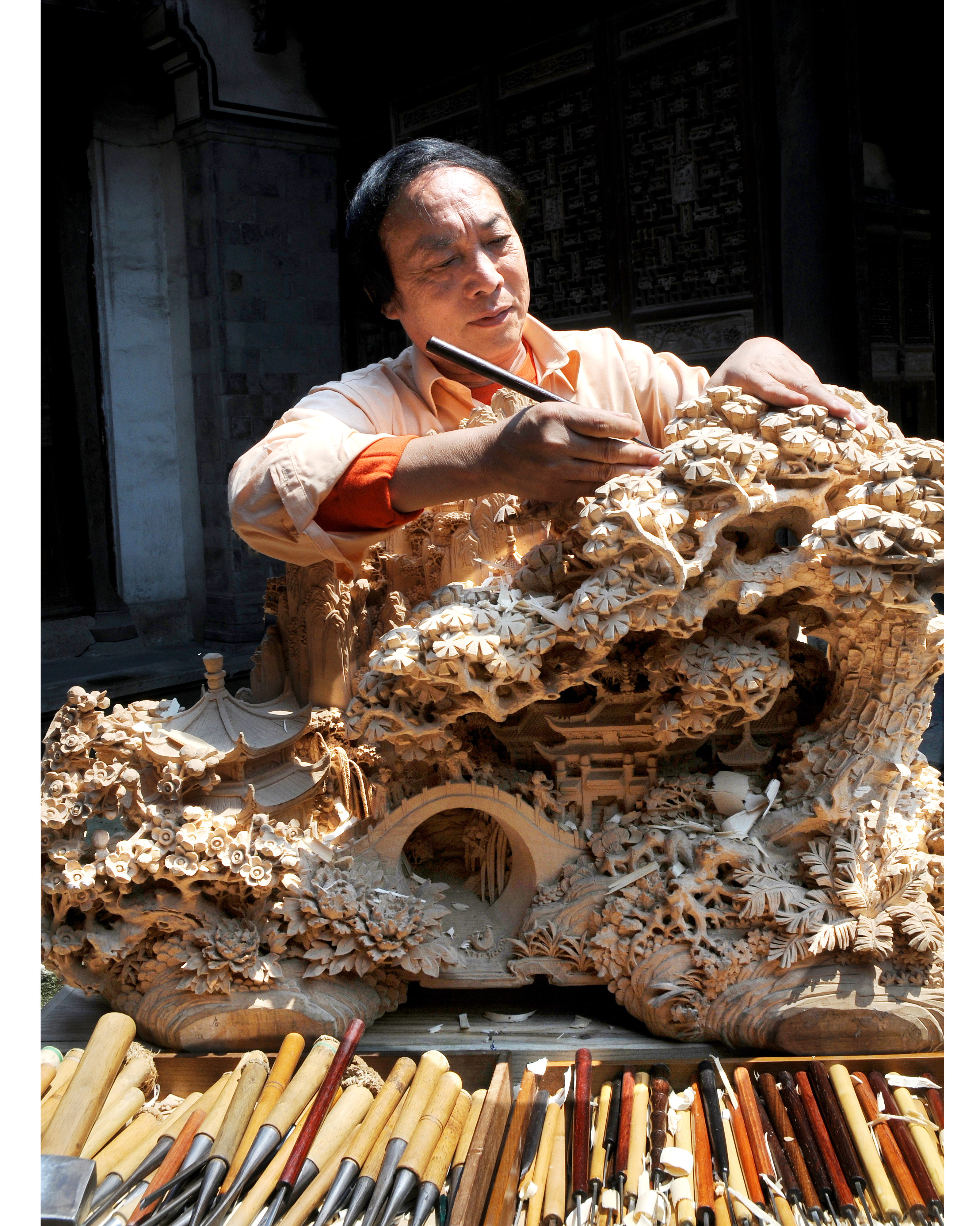 “传统文化需要传承,更需要发展。”东阳木雕是第一批国家级非物质文化遗产,作为代表性传承人,冯文土自觉肩上的担子不轻。