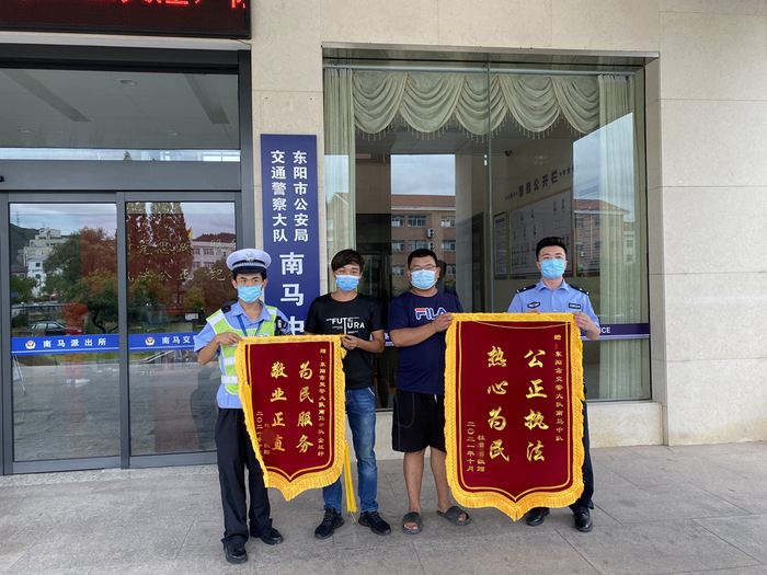 10月11日上午,杜某的家属和朋友早早的来到市公安局交警大队南马中队,将两面锦旗送到金毓轩手中,连声说道:“多亏你们劝导戴好头盔,让我弟弟逃过了一劫,真是太谢谢了!”