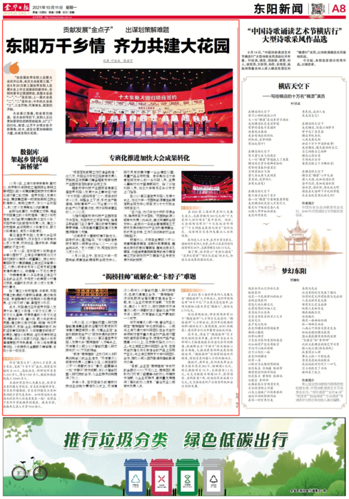 大会虽已落幕,但余音仍绕梁。在大会的号召下,东阳人正以更加紧密的态势团结起来,以“三”的衍化、裂变,让万千乡情乡愁不断聚集、壮大,迸发出更加磅礴的力量,共建东阳大花园。