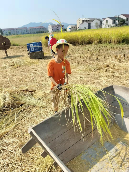下稻田收割黄澄澄的稻谷,到地头挖挖红薯拔拔菜,手洗自己的小件衣服,学着烧道简单的菜……稻谷香,红薯香,衣物香,饭菜香……这个假期,实小娃用勤劳的双手创造快乐与幸福,用辛勤的汗水育出各式香喷喷的“作业”。