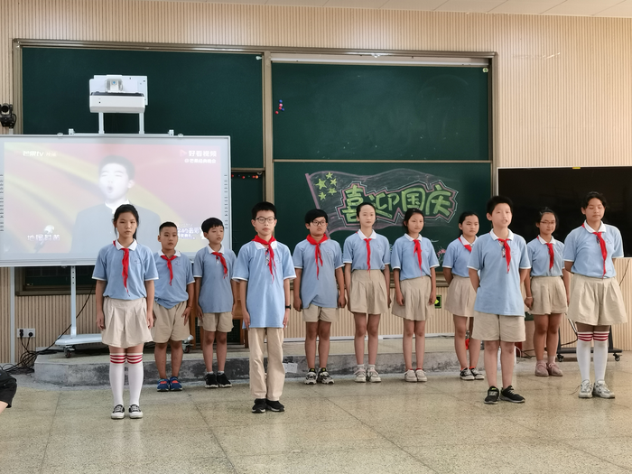 9月29日下午,东阳歌山镇西宅小学五年级的90余名师生齐聚一室,隆重举行“喜迎国庆 展望未来”主题队会活动,共庆国庆。