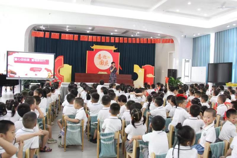“红星闪闪放光彩,红星灿灿暖胸怀,红星是咱工农的心,党的光辉照万代…… ”嘹亮的歌声回荡,孩子们把对祖国的热爱与祝福,化作一首首歌,庆祝祖国生日。