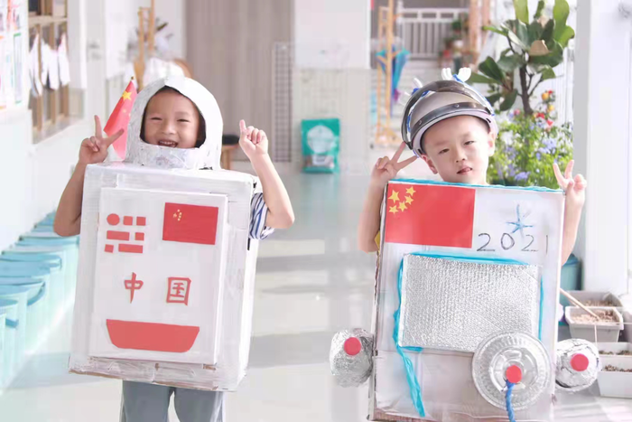 随着神舟十二号成功返回地球,浦江县翠湖幼儿园的孩子们举行了一场别开生面的“致敬航天、筑梦航天”主题活动。