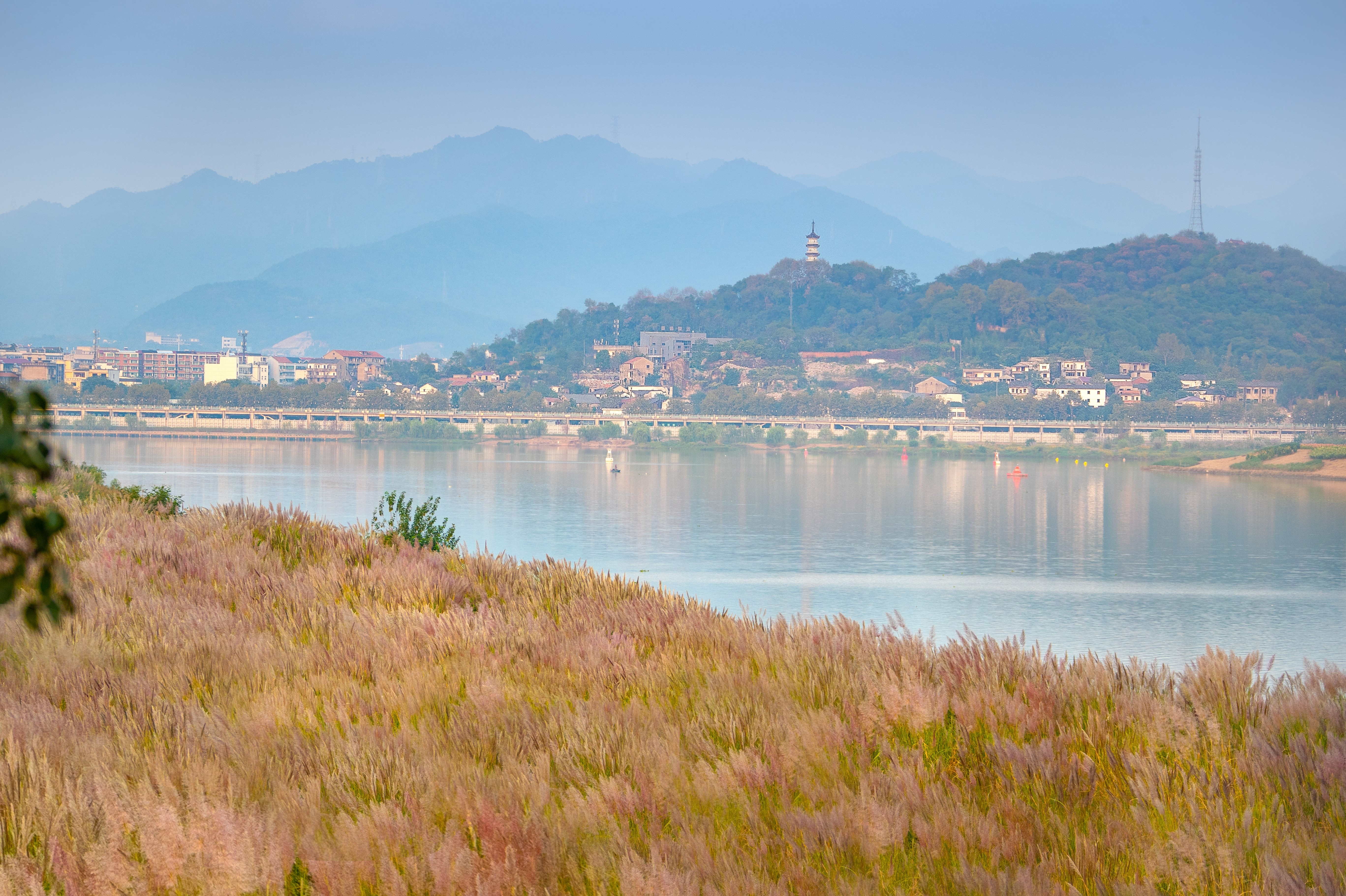 金秋时节,在兰溪市区中洲公园,成片的茅草花开得正艳,秋风扫过,激起层层粉红色的波浪。