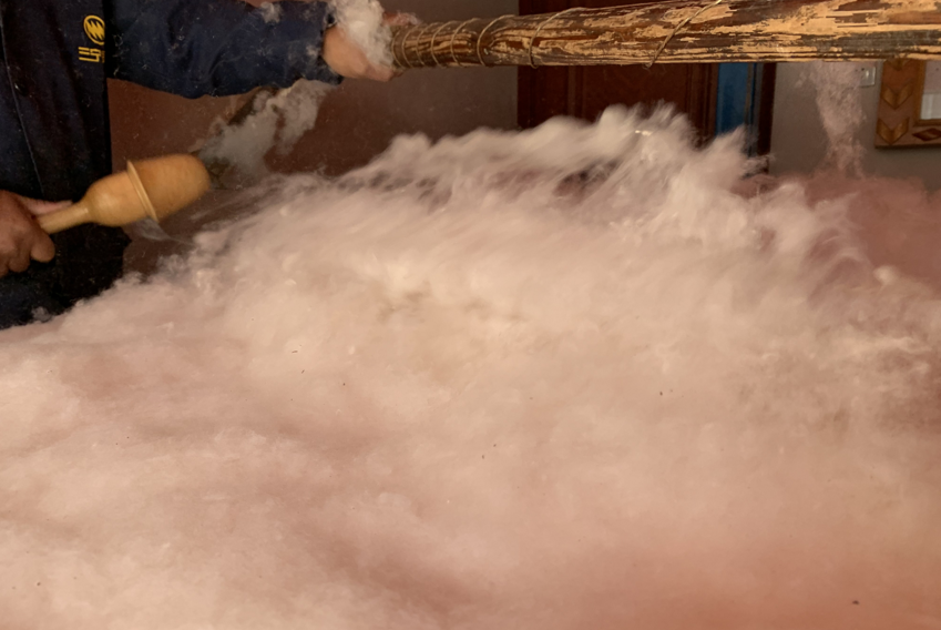 如今,随着机器的普及,现在用手工弹棉花的越来越少。金师傅会根据顾客的喜好,选择手工还是机器制作,价格也会因为手工和机器的区别有所不同。
