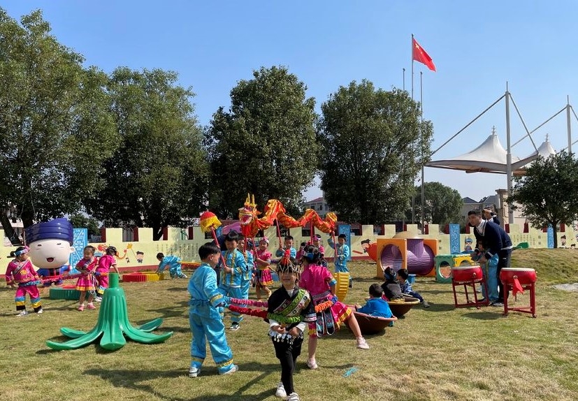 这是兰溪唯一一所地处少数民族乡的公办中心幼儿园。结合幼儿不同年龄段的发展特点,该幼儿园立足畲族文化特色,深入挖掘畲族传统民间游戏,积极开发《畲乡艺韵》、《玩乐畲趣》等园本化课程,将民间游戏贯穿融合在一日保教的各个环节,让孩子全方位地走进畲族,感受畲族文化内涵。“我们最终的目的就是想让孩子们接受多元的文化,达到和谐共生的育人目标。”该幼儿园园长胡瑜莲说。