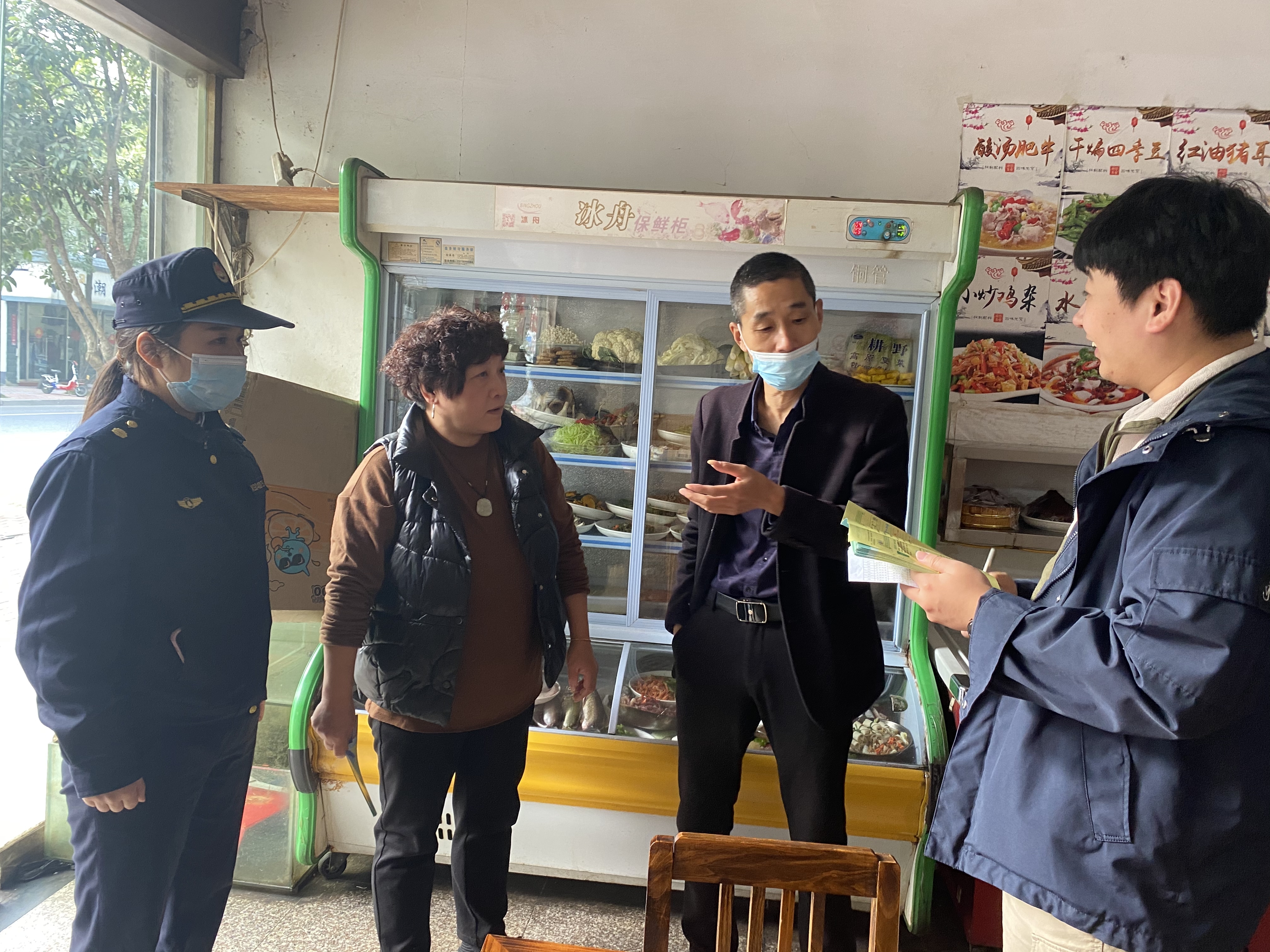 “老板,你店里的防火门安装得很到位,整改迅速值得点赞。但是垃圾分类有所松懈,你看,一张餐巾纸混进了可腐烂垃圾里了。”“老板娘,你家垃圾分类保持得不错,只是消防通道抓紧清理不要堆放杂物......”