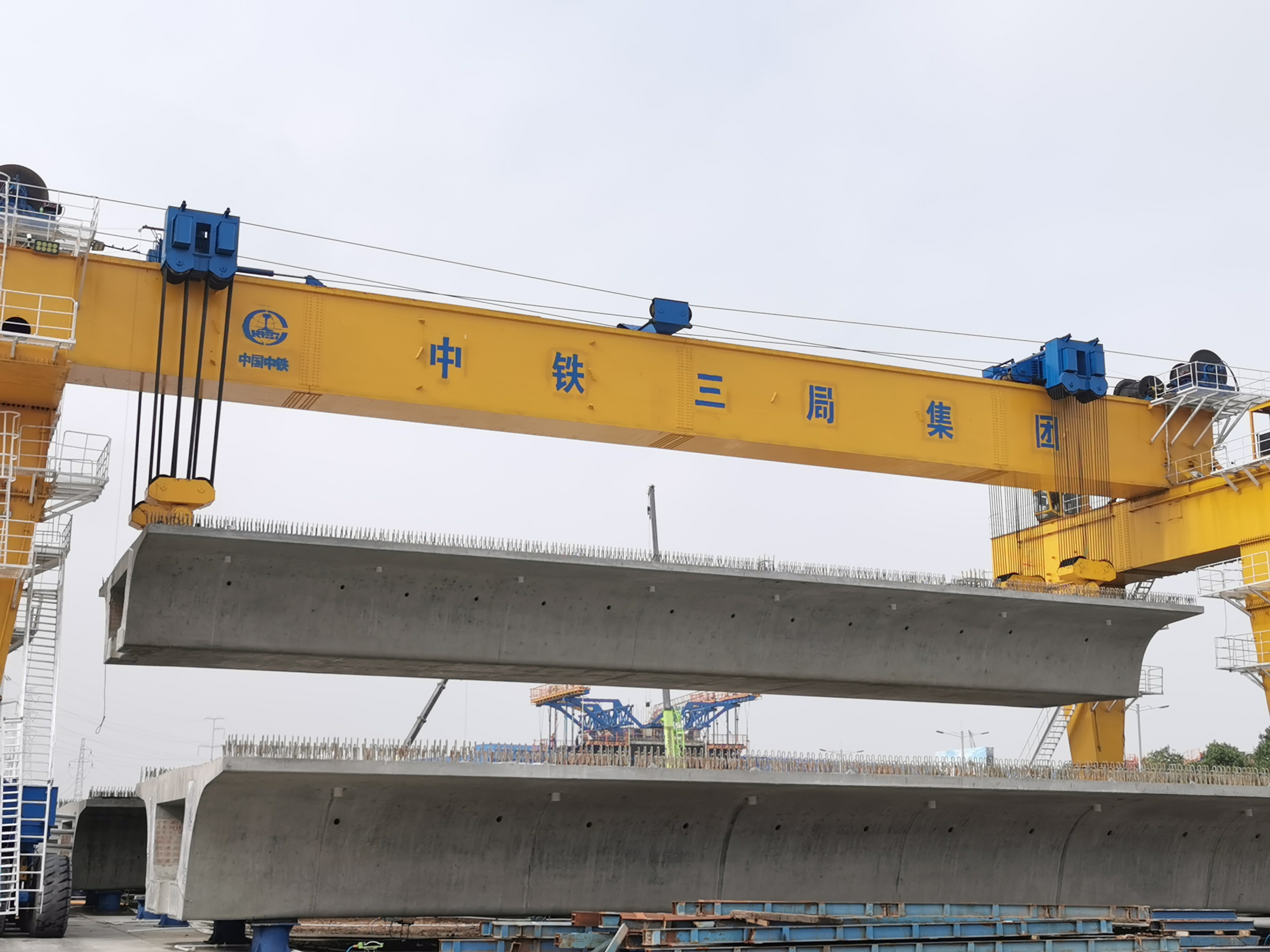 11月19日上午,记者在兰溪市灵洞乡中铁三局金建高铁(Ⅰ标)金华制梁场看到,一孔长32.6米,宽12.2米,重达730多吨的预制箱梁,被900吨级提梁机缓缓吊起,送到指定位置。