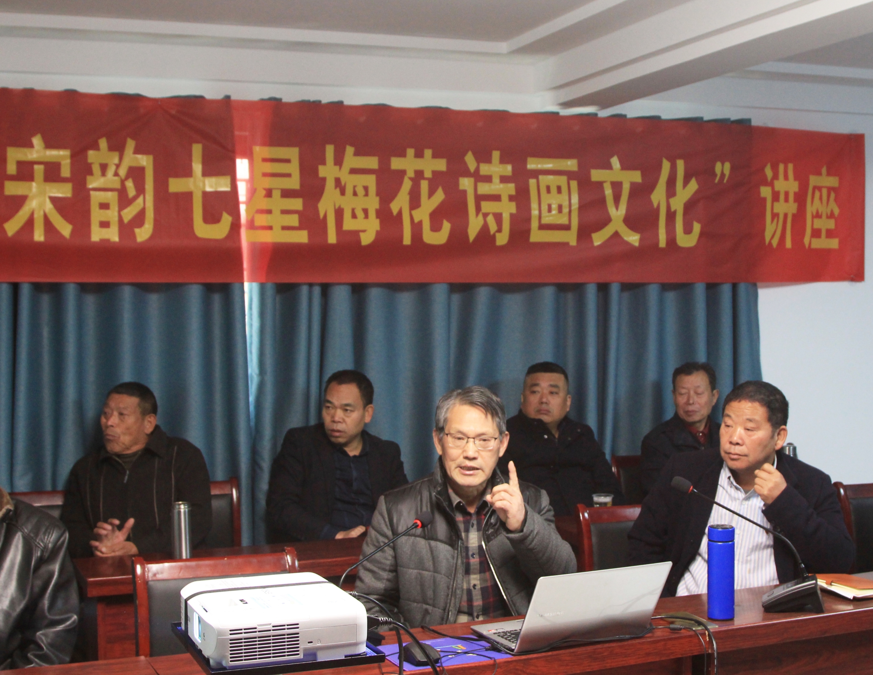 11月24日,兰溪市梅江镇墩头村在村文化礼堂举行培育“文化标识地”打造“诗画金名片”讲座,由浙江省民间文艺家协会六届副主席、金华市政协文史委委员、金华山文化研究院院长、文博研究员施怀德对“宋韵七星梅花诗画文化”作了全面的诠释。