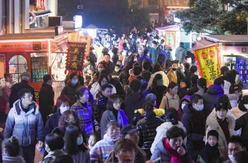 2月15日元宵节,婺州古城景区内游客三个一群、五个一伙,兴致勃勃地聚在一起赏月。但有一些人没有戴口罩,疫情还没有结束,还不到放松警惕的时候。