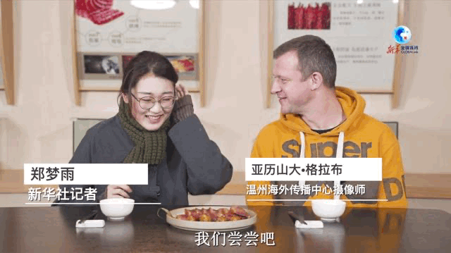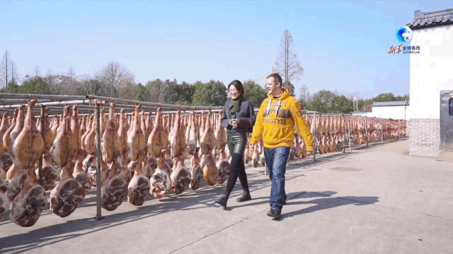 新华社记者郑梦雨邀请英国朋友亚历山大·格拉布一起品尝金华火腿,并探访背后的故事。
