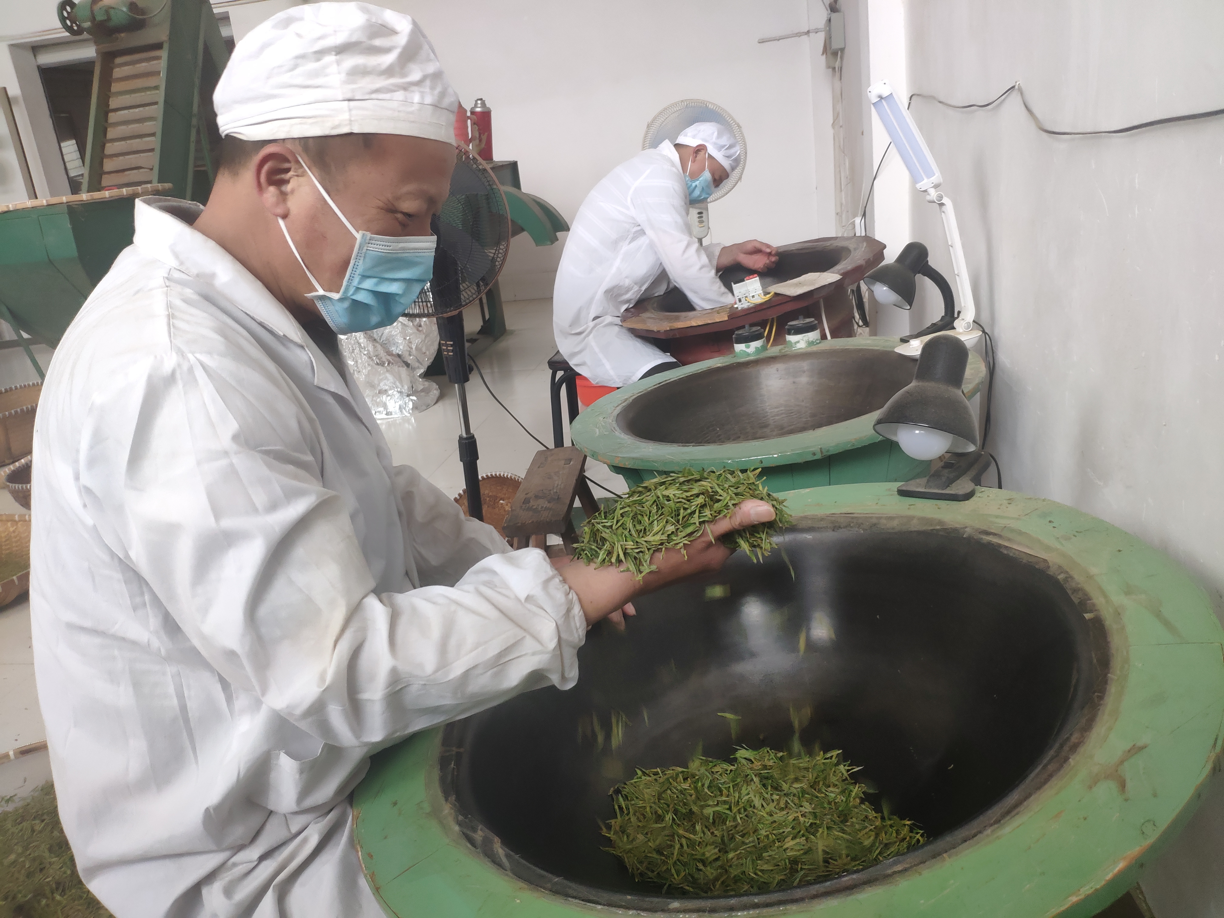 市场上总有高端茶需求,生产高端茶离不开优秀的制茶人。在武义汤记茶业有限公司负责人汤玉平的制茶车间里,有机器也有手工炒茶锅。为生产优质茶,他不仅自己动手炒,还聘请了几名经验丰富的炒茶师傅。