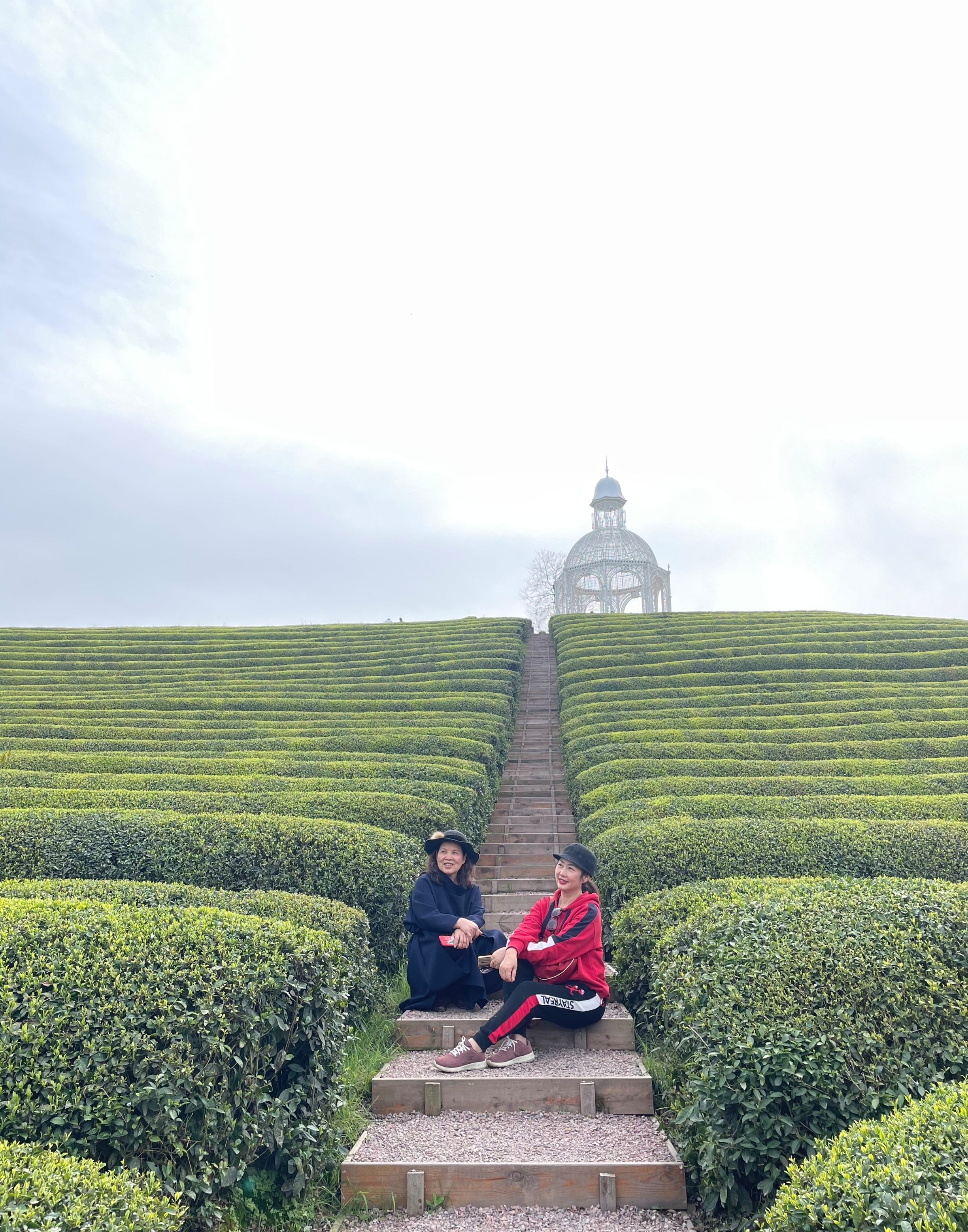 在茶山顶上眺望整个花田小镇,茶山是最美的风景。