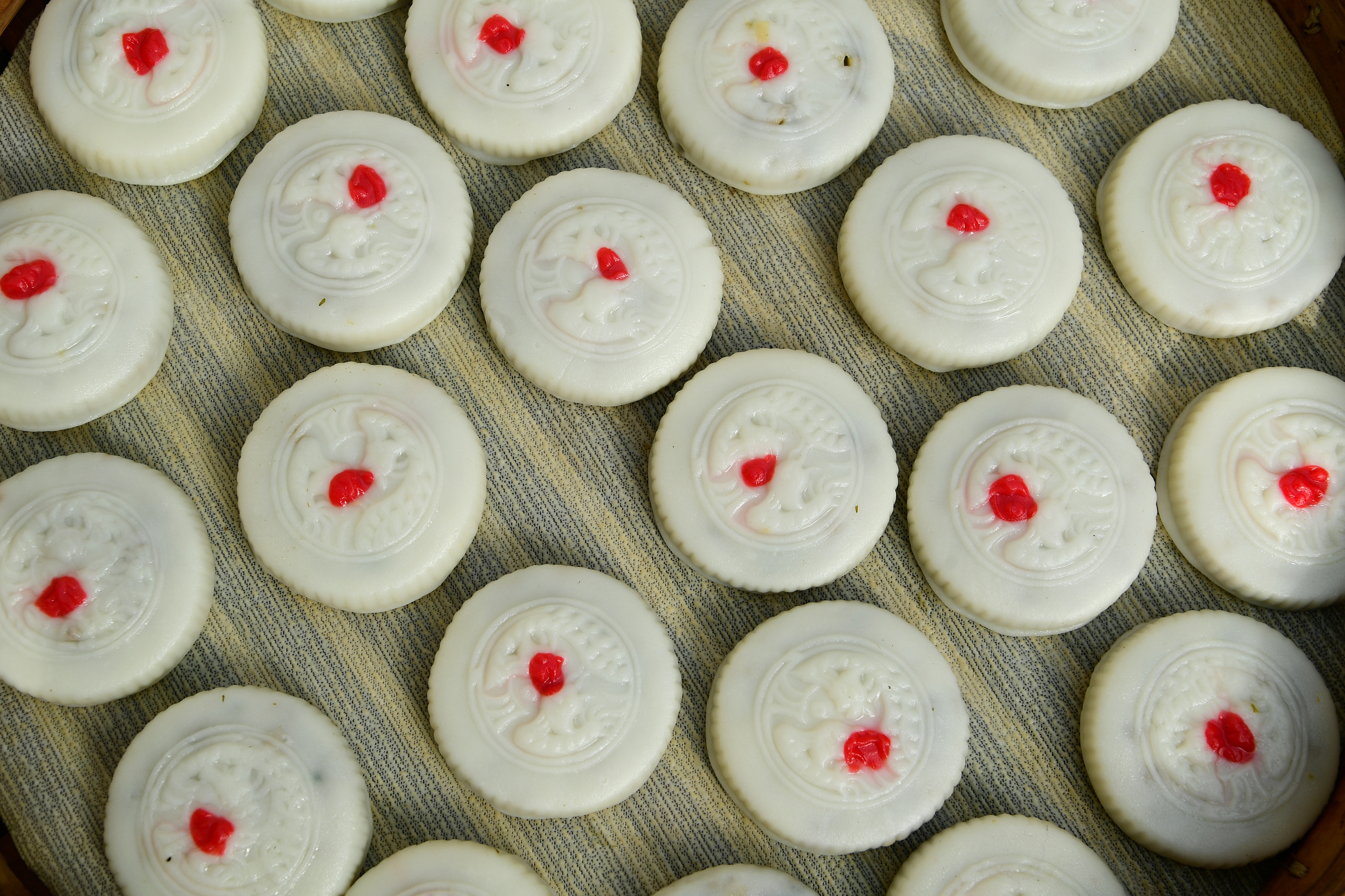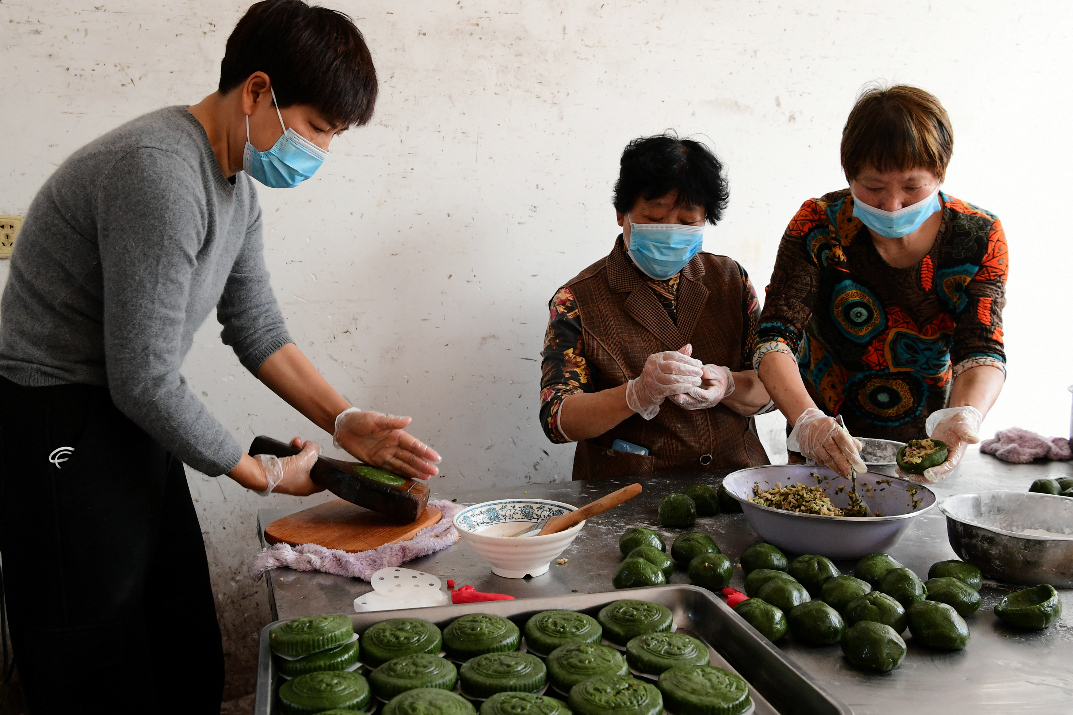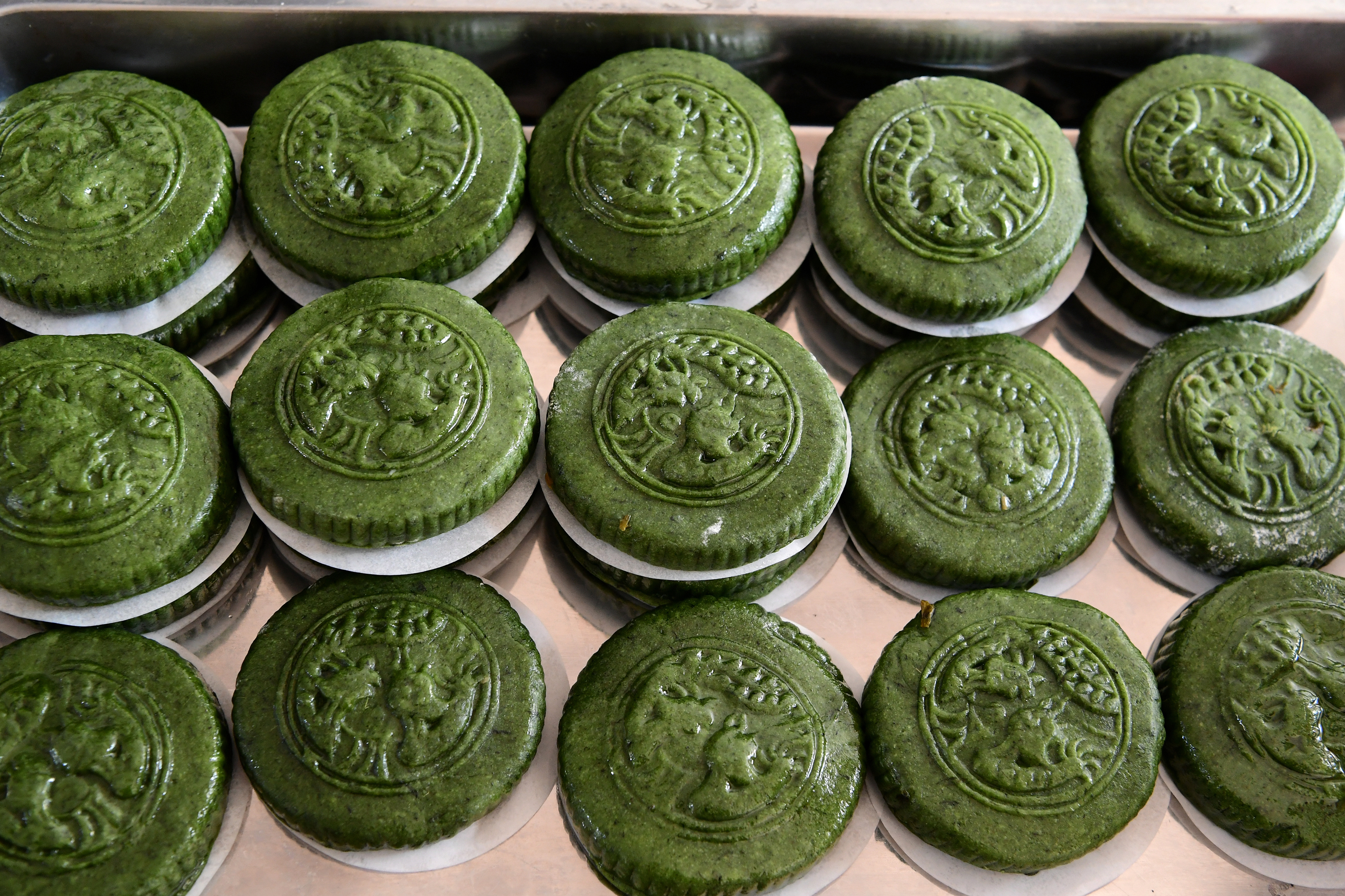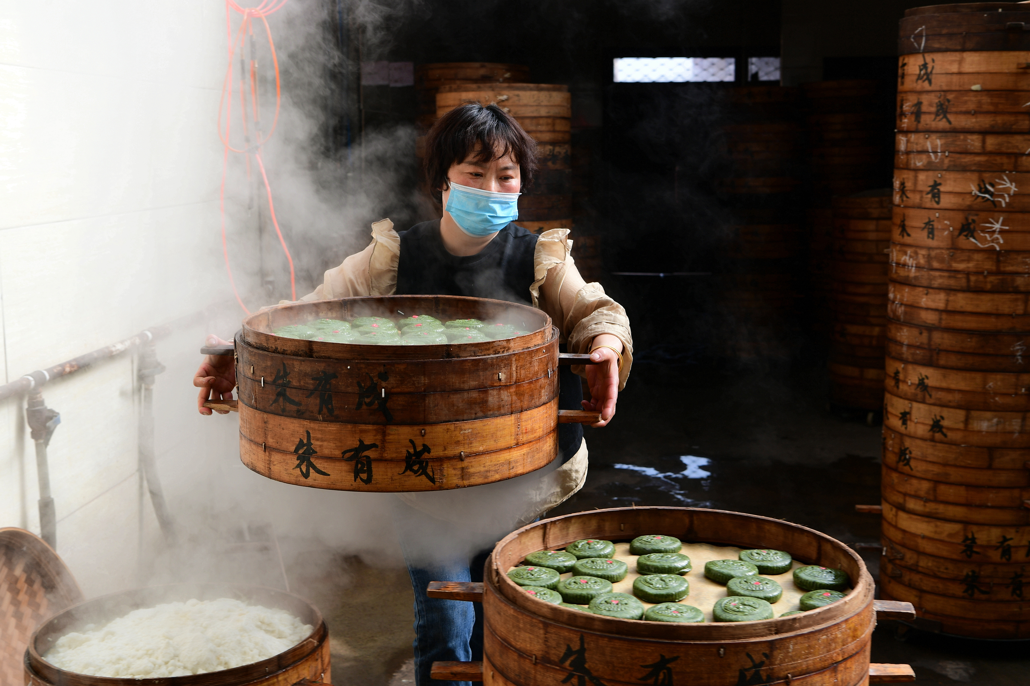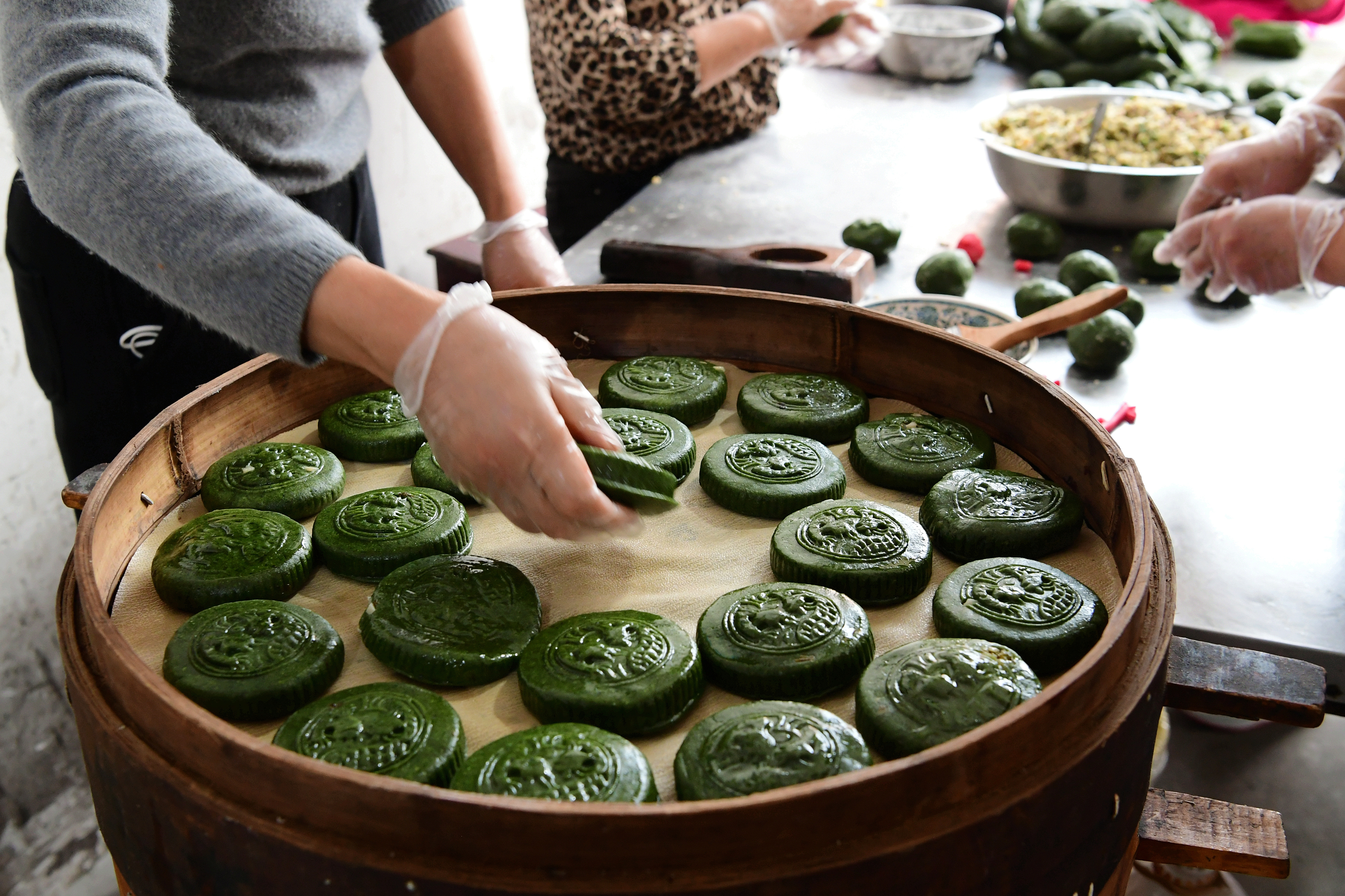 清明节临近,不少顾客带着从田间地头采摘或市场上购买来的艾草、泥胡菜和鼠麴草等原材料,来这家作坊,根据各自口味,定制不同风味、形状各异的“清明粿”,作为清明期间的时令传统美食。