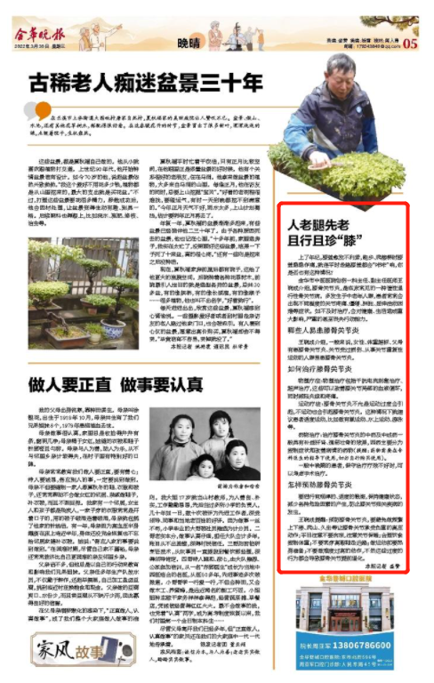 金华市中医医院创伤一科主任、副主任医师王晓成介绍,膝骨关节炎,是临床常见的一种慢性退行性骨关节病。多发生于中老年人群,患者常常会出现不同程度的关节疼痛、僵硬、肿胀、屈伸活动困难等症状。如不及时治疗,会对健康、生活造成重大影响,严重的甚至丧失行动能力。