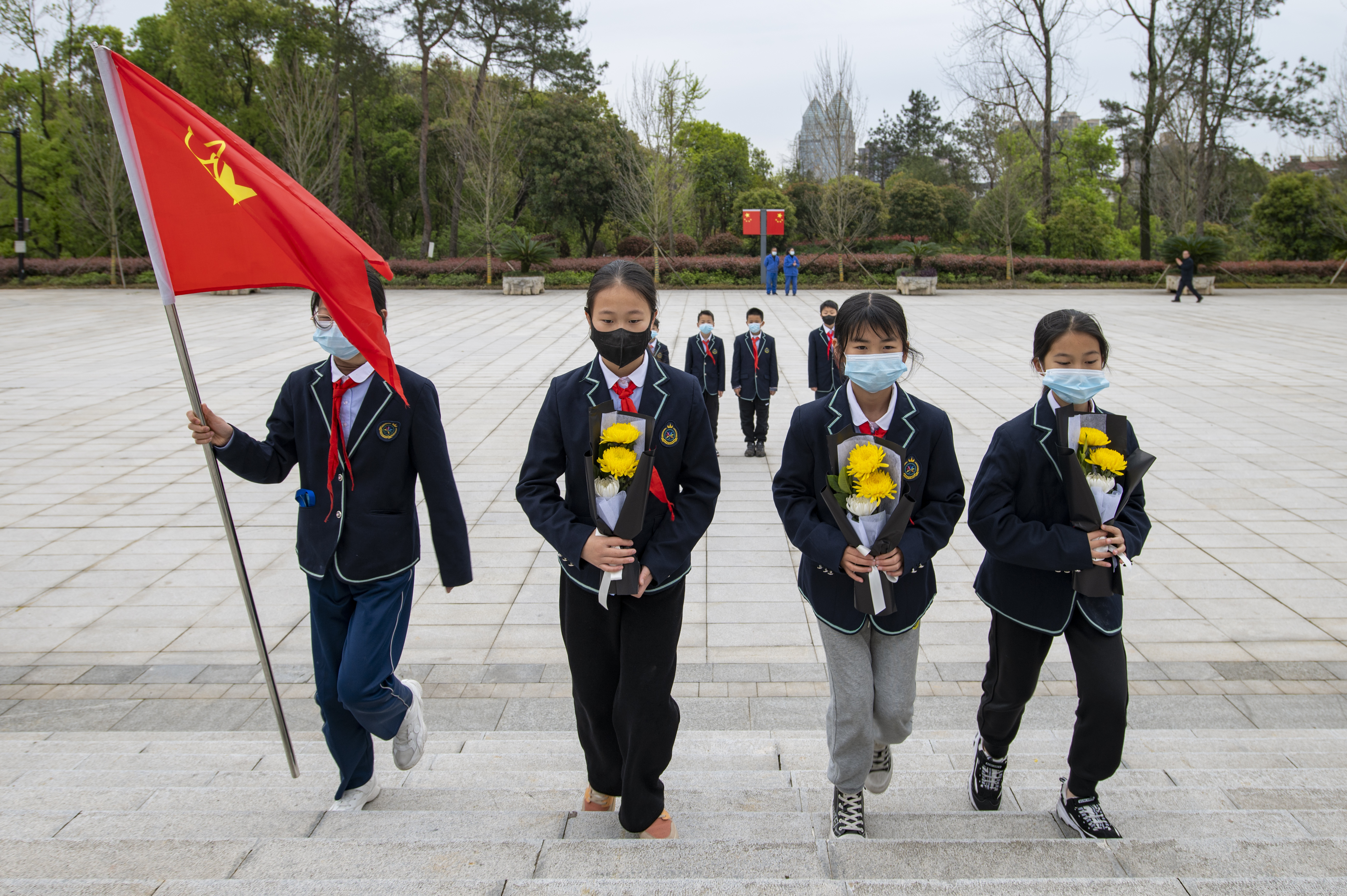 4月1日,市革命烈士纪念碑前,群众自发敬献鲜花祭英烈。