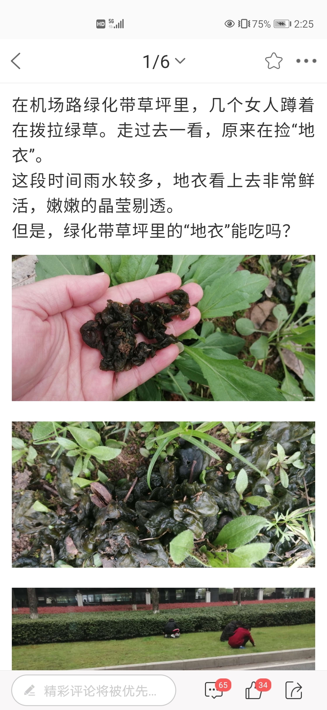 “绿化带草坪里的地衣可以吃吗?”近日,义乌一网友看到有人在路边的绿化带草坪里捡地衣,就拍下照片,在本地论坛发帖询问。不少网友在帖子下面回复,众说纷纭:有的说洗干净可以吃;有的说不能吃,因为绿化带里经常喷洒药物;有的担心尾气污染、重金属污染……