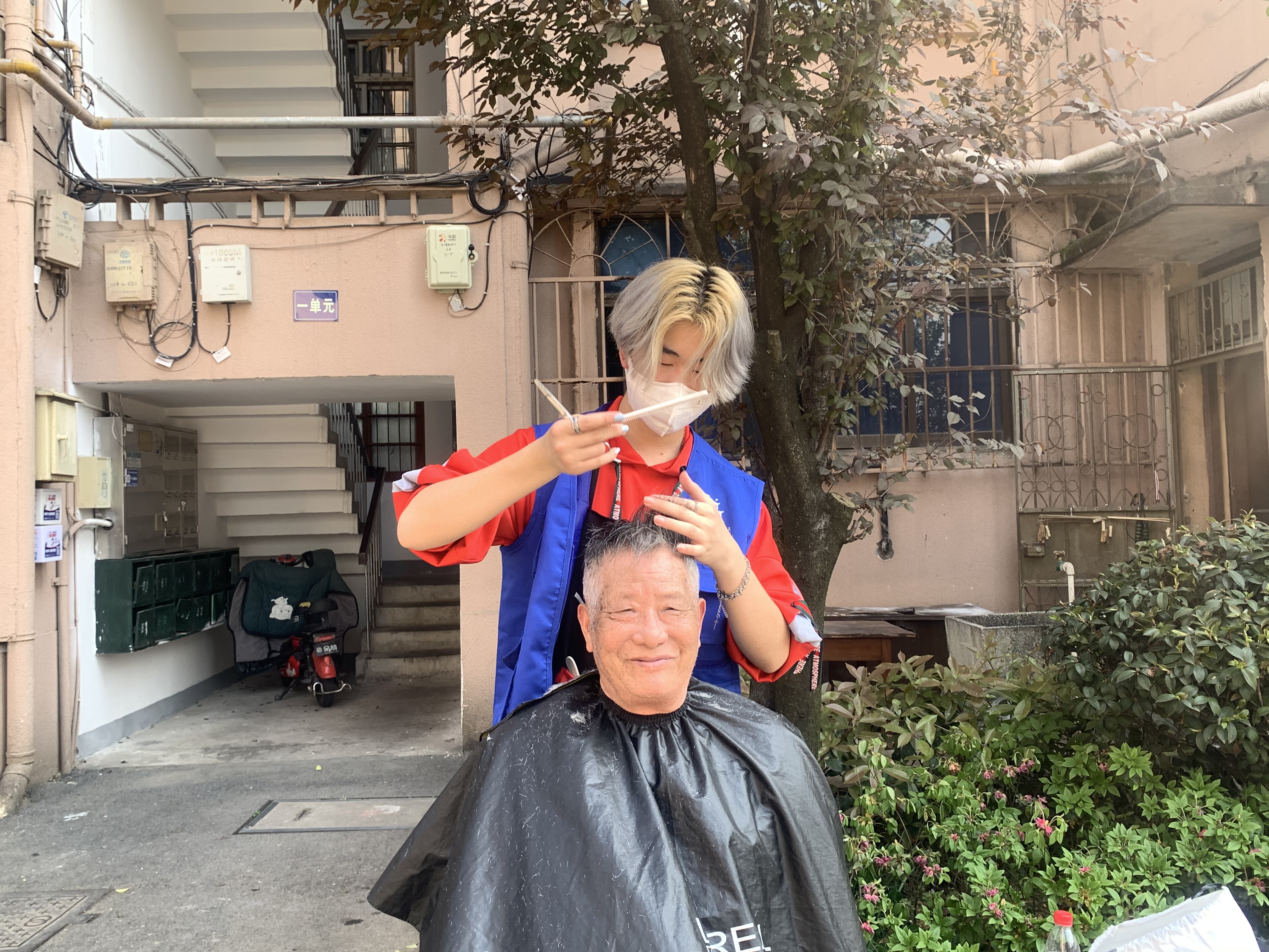 “现在疫情期间,我们年纪大的人不敢出去,而且腿脚不便也出不去。我抱着试一试的想法给社工站的小戚打了一个电话,没想到他真的带着理发老师上门来了,太感谢他们啦!”89岁的李奶奶说。
