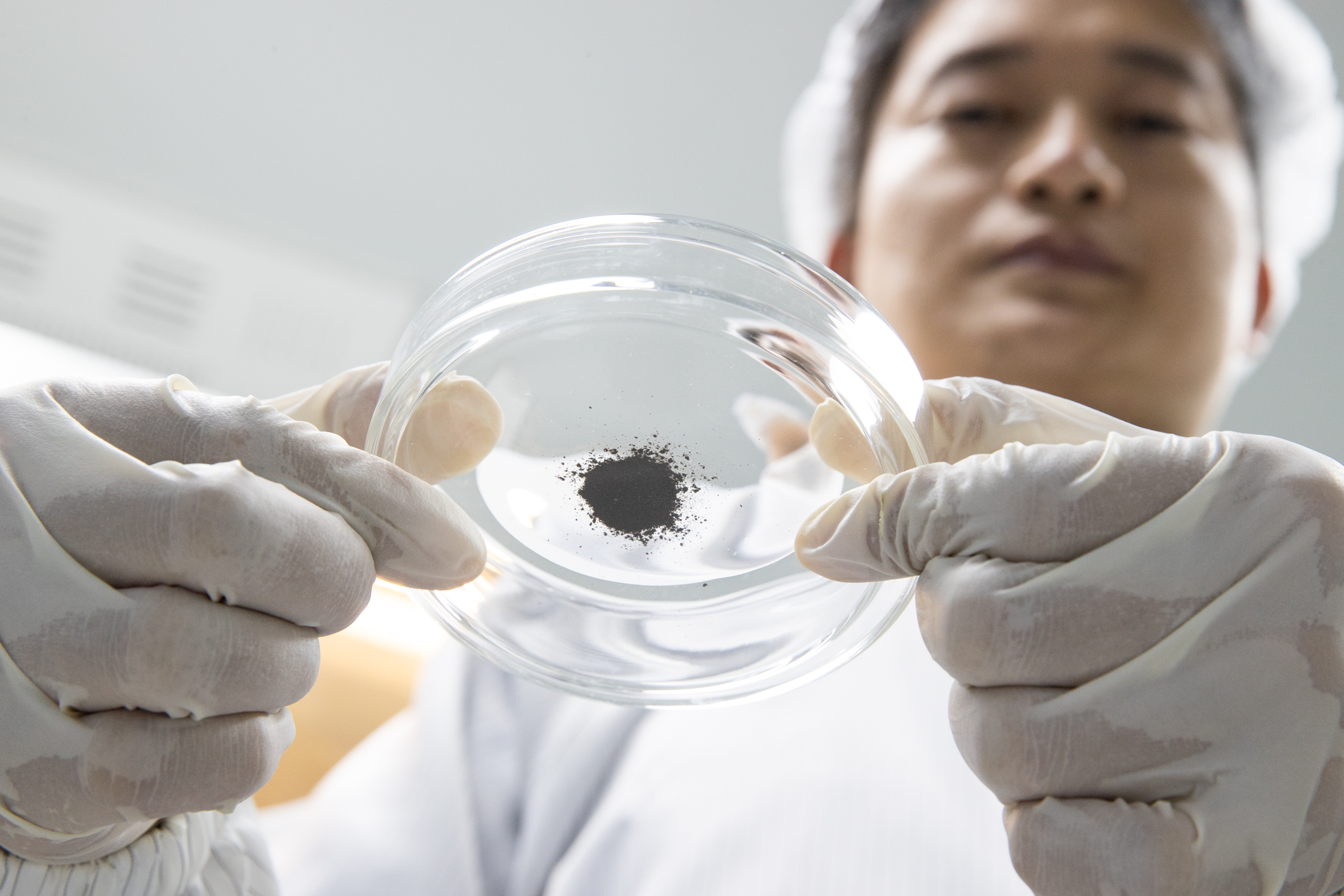 在中科院地质与地球物理研究所月球样品洁净室,田恒次副研究员在处理月球样品(2021年10月15日摄)。 新华社记者 金立旺 摄