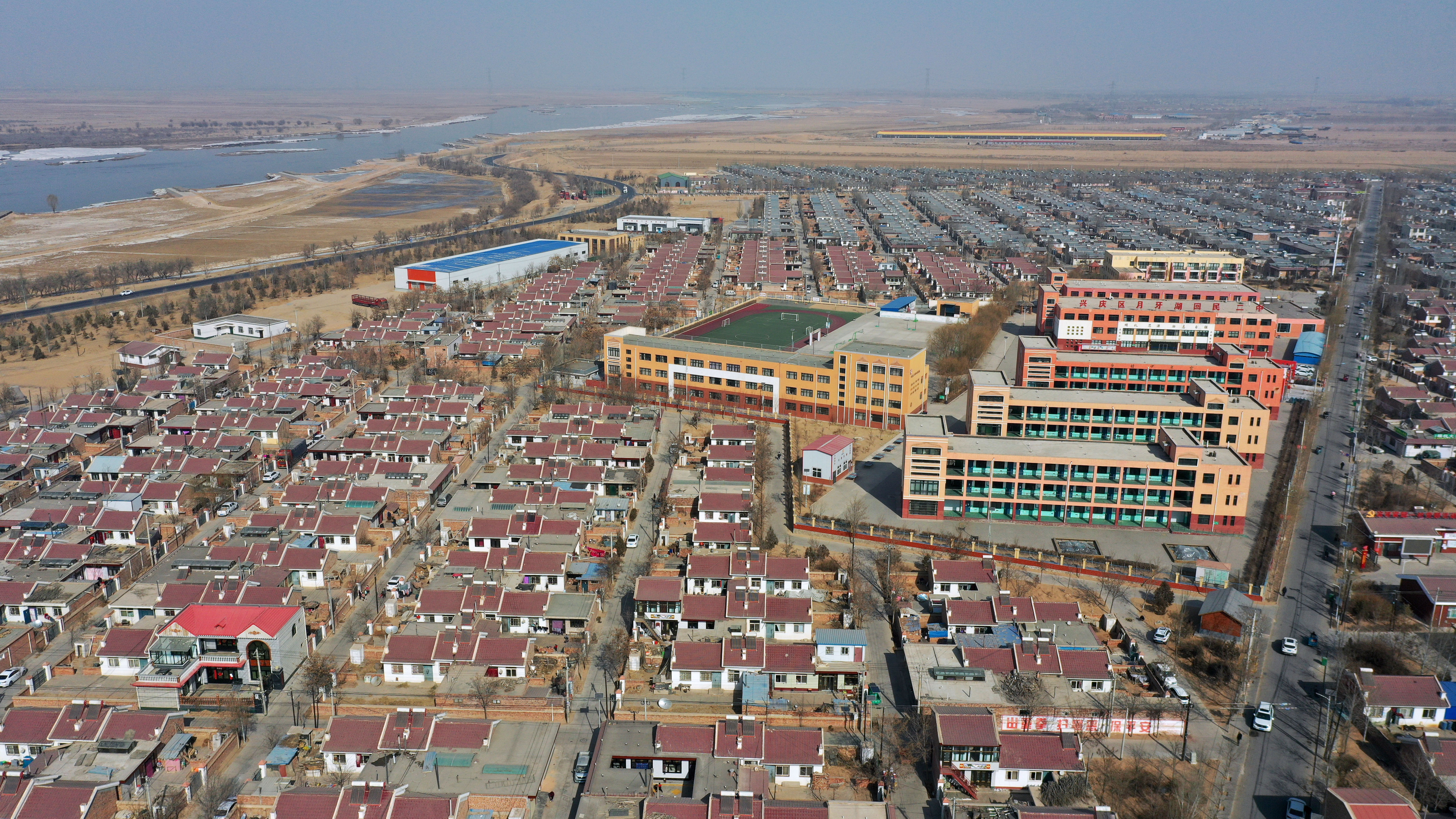 宁夏银川市兴庆区月牙湖乡滨河家园移民村(无人机照片,2021年2月11日摄)。新华社记者 王鹏 摄