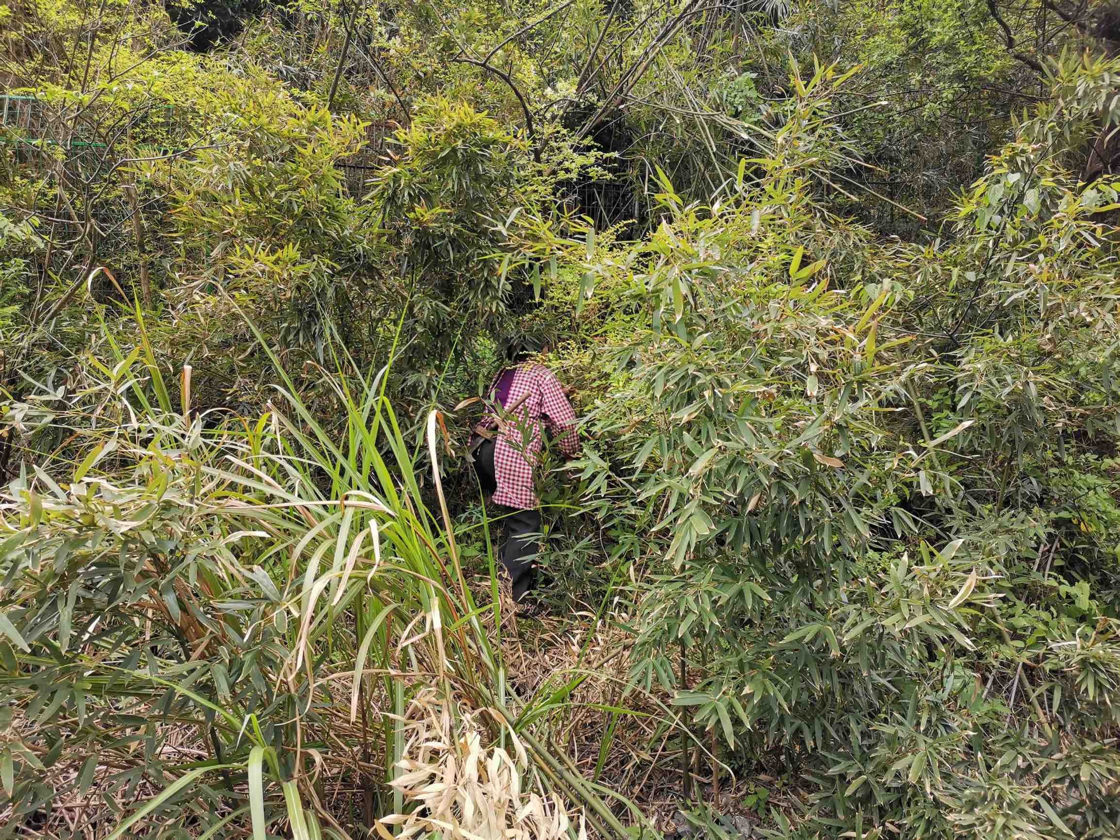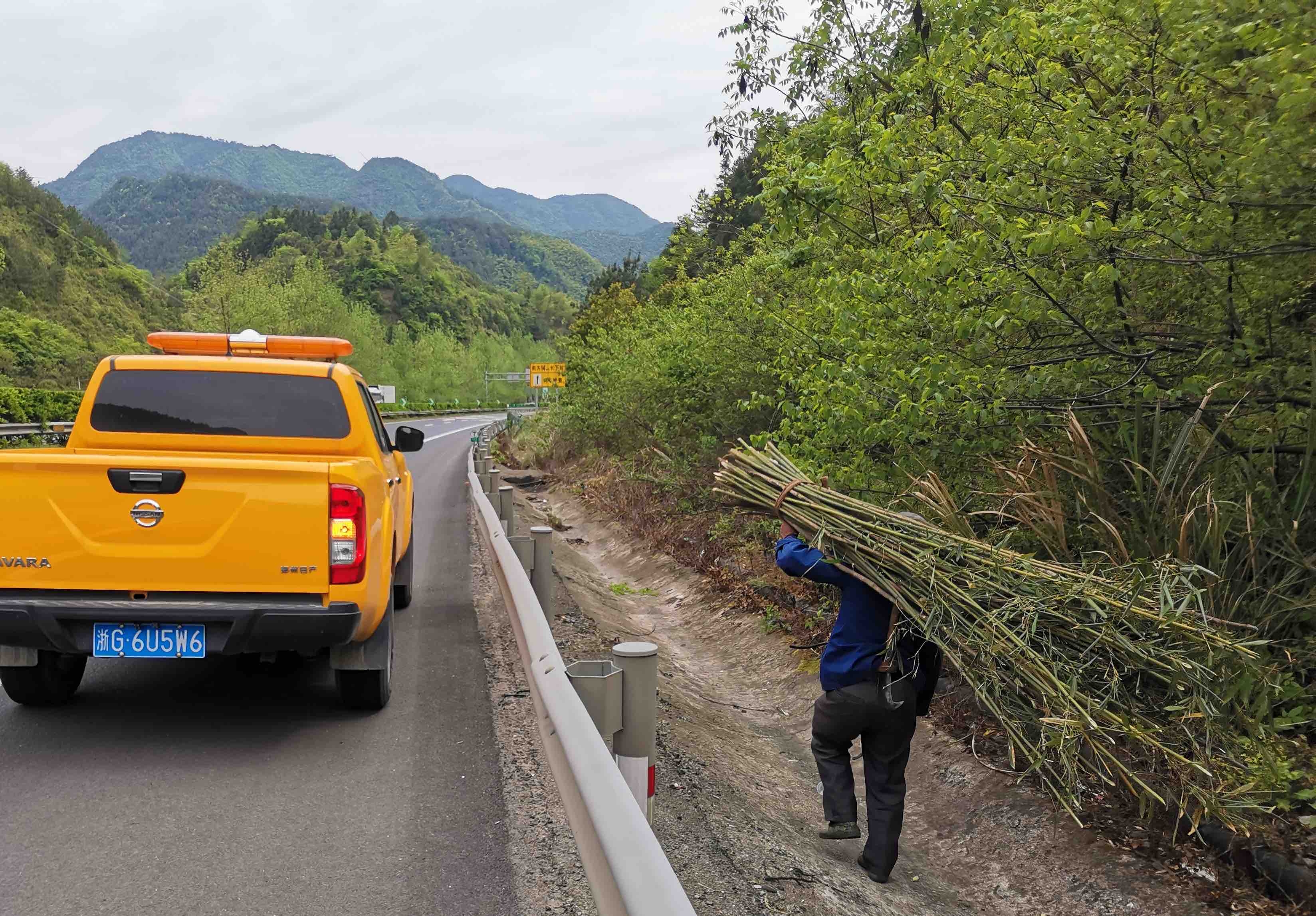 4月17日,一对夫妻翻越高速公路隔离栅进入公路护坡上砍小竹子,所幸被高速巡检员及时发现制止。