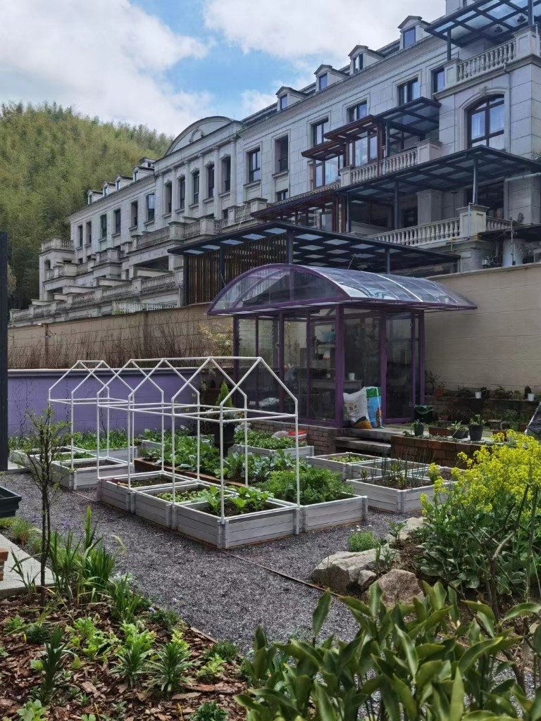47岁的朱露依家在顶楼,有60多个平方米的露台,她喜欢种花已经20多年,自从新冠肺炎疫情发生后,她觉得菜园会带来更大的便利,再加上新房光是院子就有300多平方米,从去年5月份开始,没等住进去,她就在里面种起了菜。