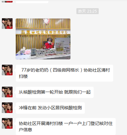 “这个点还在陪我们加班,协助我们开展清村扫楼,一户一户上门登记核对住户信息。”19日晚上9点25分,五里亭社区党委副书记陈露给记者打来电话,说77岁的老奶奶还在陪他们加班,“从核酸检测第一轮开始,就跟我们一起,冲锋在前,发动小区居民核酸检测。”