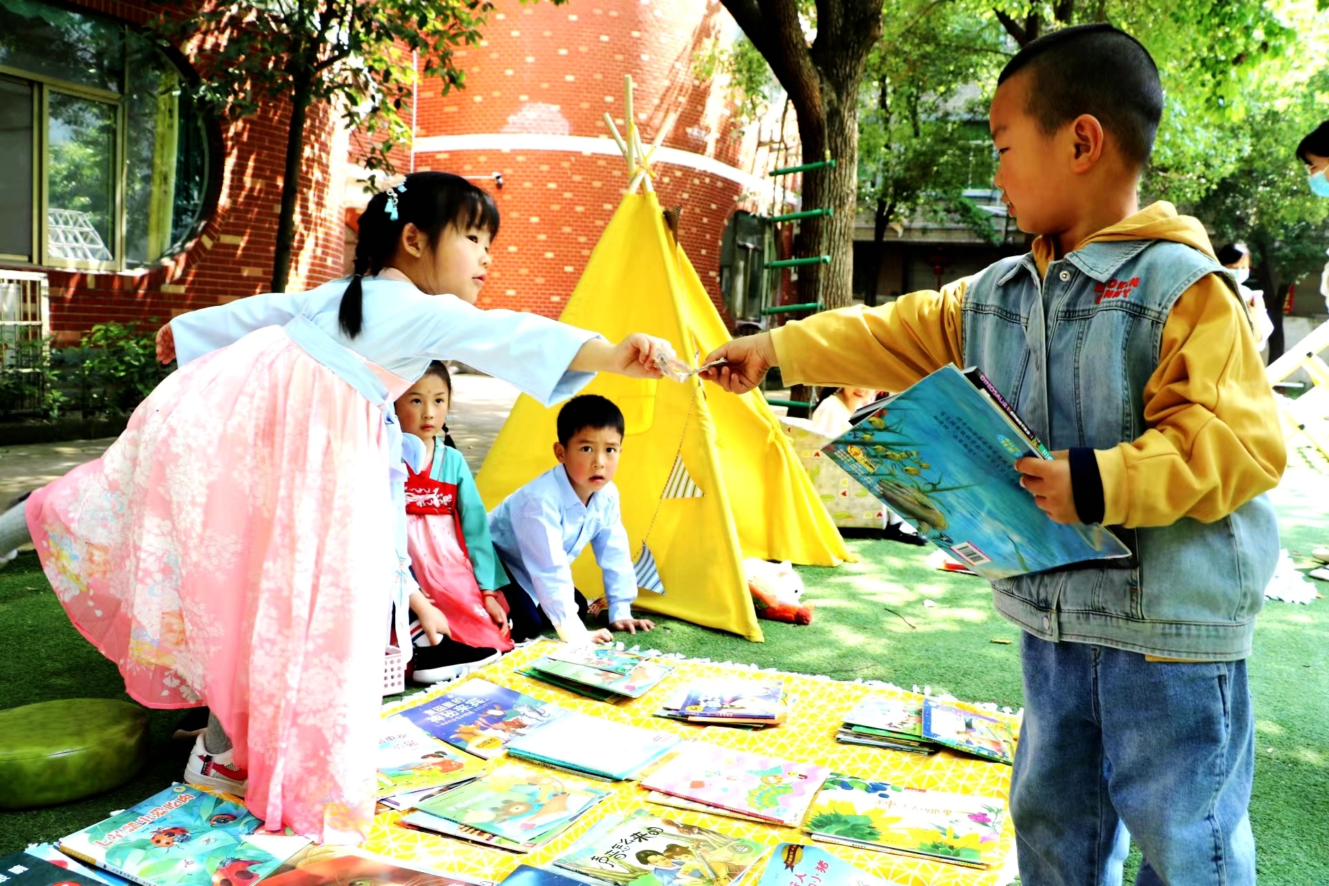 4月22日,在世界阅读日来临之际,义乌市廿三里街道中心幼儿园关工委开展“交换快乐、悦读美好”图书义卖活动。